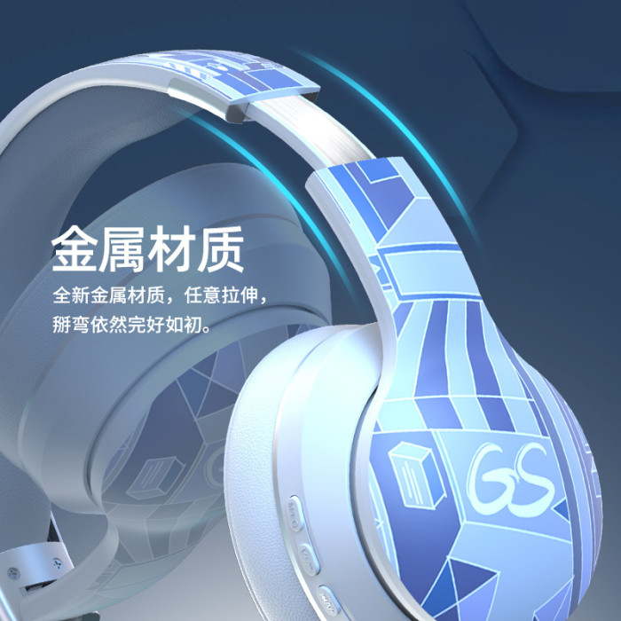新款頭戴式耳機塗鴉圖案國潮無線藍牙遊戯電競重低音超長續航