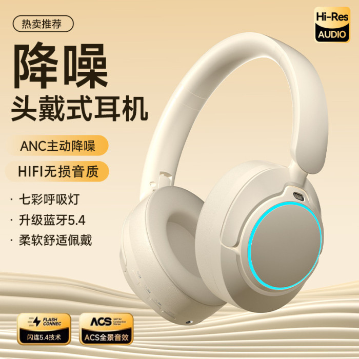 爆款ANC主動降噪頭戴式無線藍牙耳機 重低音可控燈大耳罩