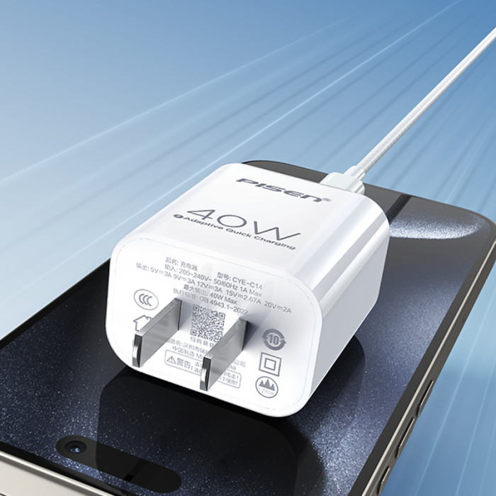 品勝40W亮面氮化鎵單Type-c充電器快充適用蘋果8-16系列華爲小米