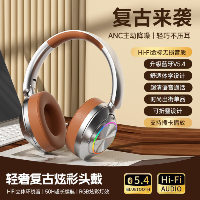 新款ANC主動降噪耳機頭戴式復古金屬感爆款