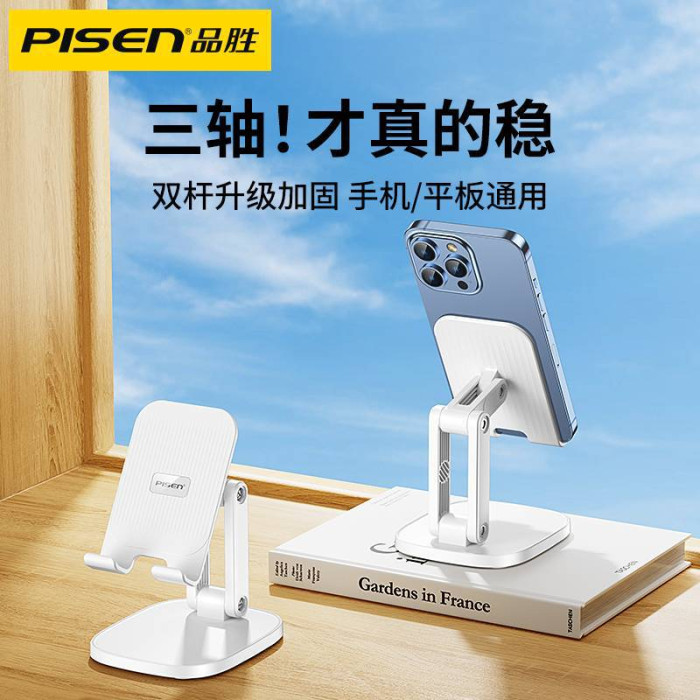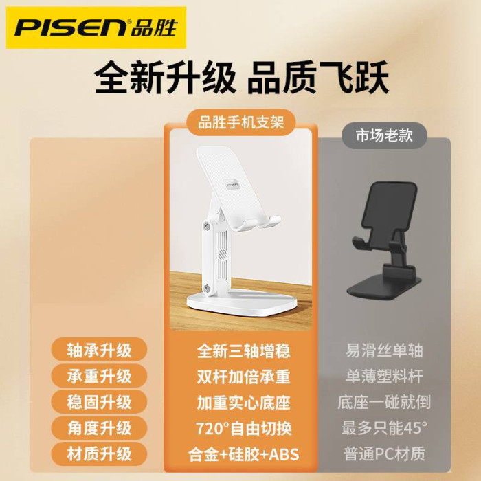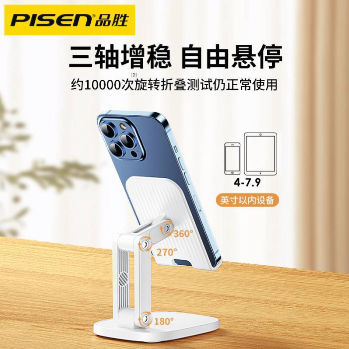 品勝鋁合金雙軸折曡可攜式手機支架懶人防滑抗震矽膠材質手機支架