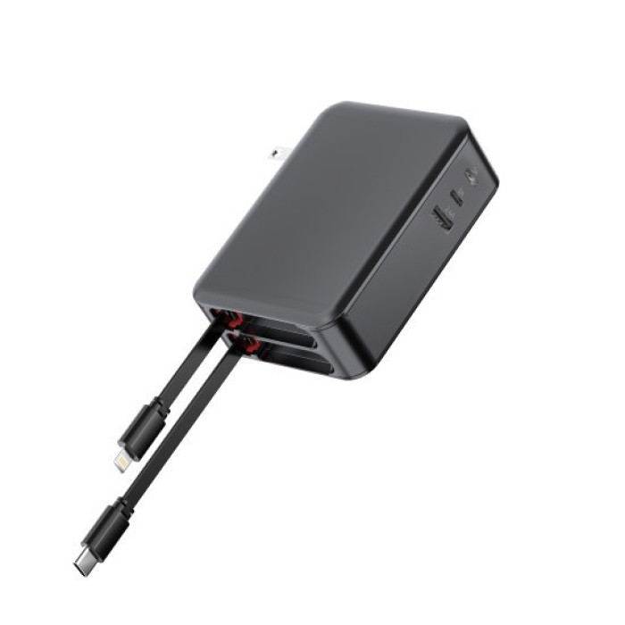 65WPD快充頭氮化鎵AC充電器自帶伸縮線USB旅充插腳可折曡USB牆充