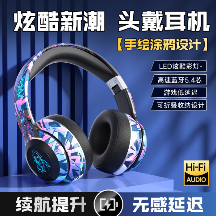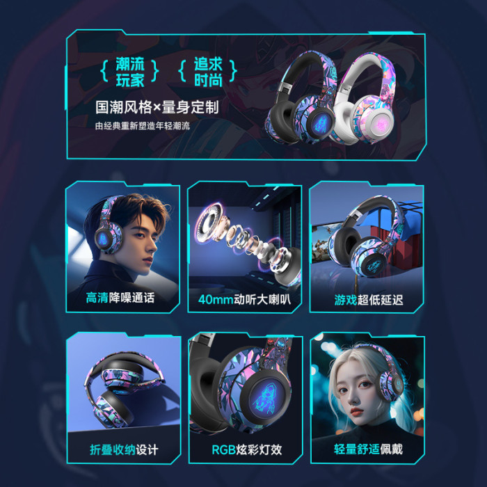 2025新款炫酷賽博龐克風頭戴式藍牙耳機電競遊戯男女主播通用國潮