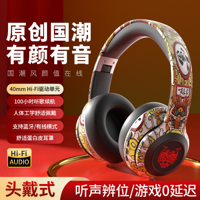 國潮塗鴉頭戴式耳機藍牙無線遊戯電競新款爆款