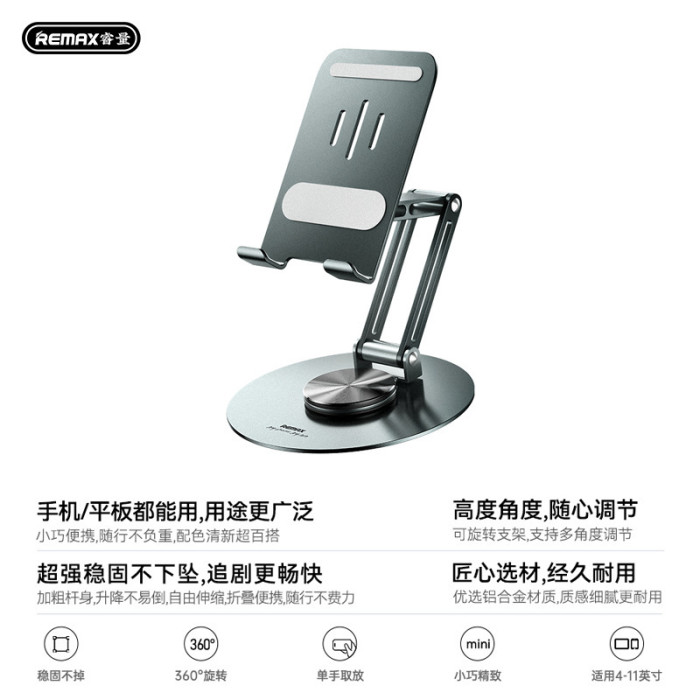 Remax鋁合金手機支架可旋轉調節平板支架可折曡升降手機平板通用