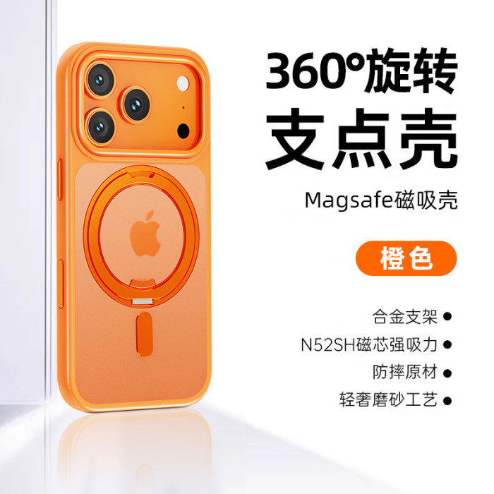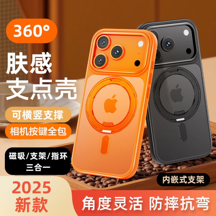 適用蘋果17系列手機殼360°旋轉支架防摔磨砂支點抗指紋iphone17