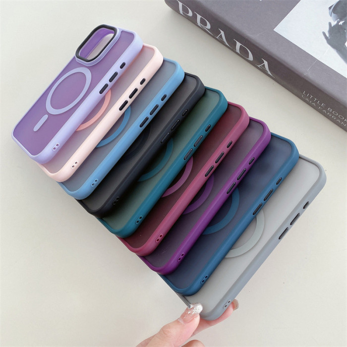 適用蘋果16promax手機殼磁吸iPhone15plus膚感磨砂14半透明保護套