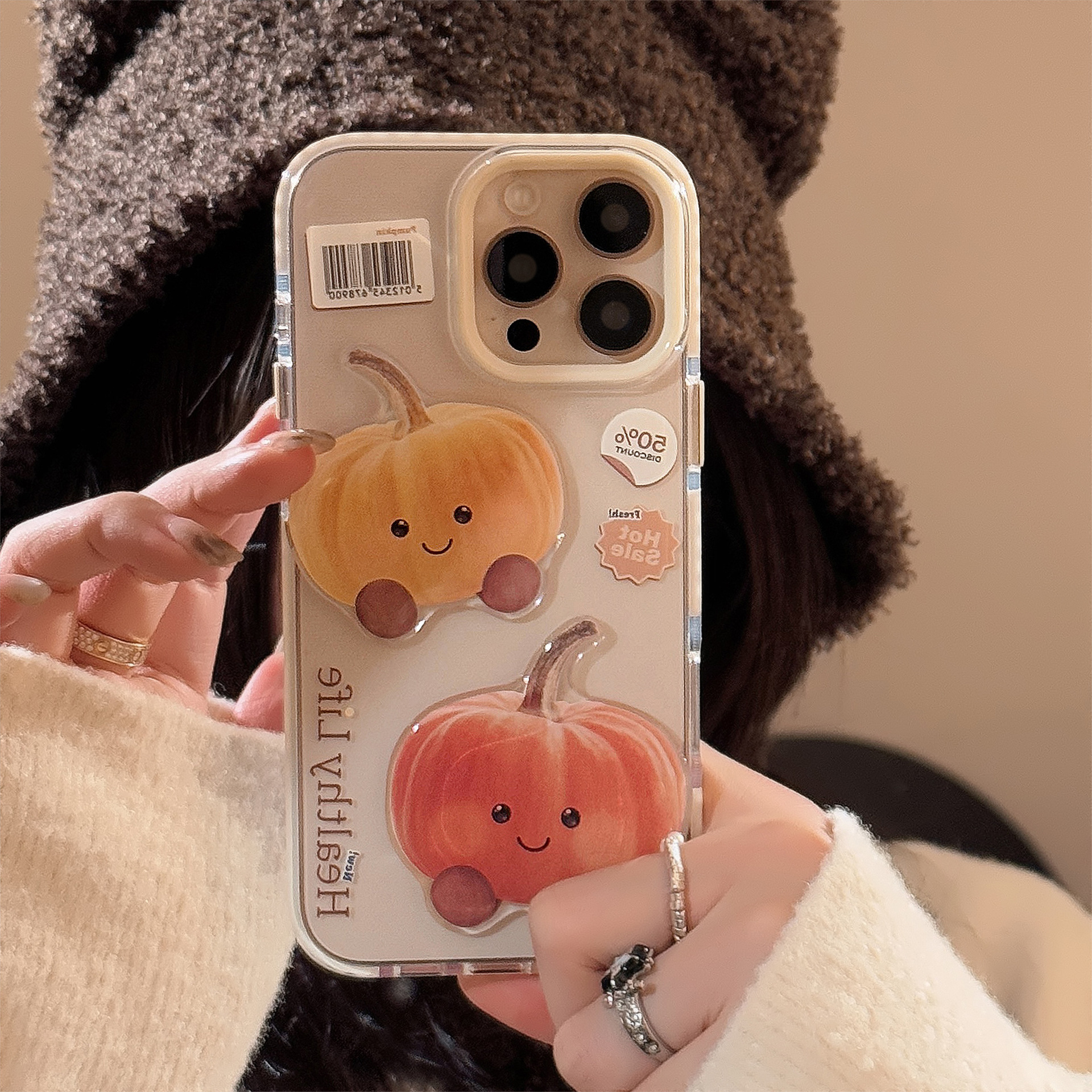 復古卡通南瓜iPhone15蘋果16promax手機殼適用14防摔13透明11立體