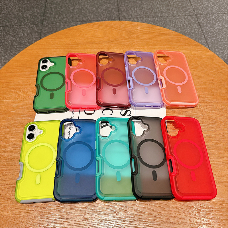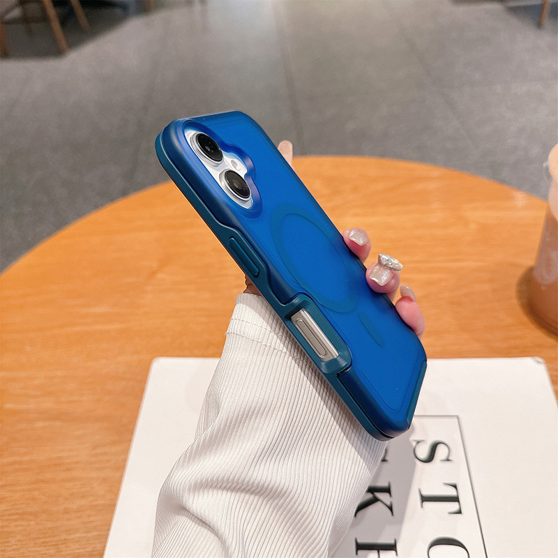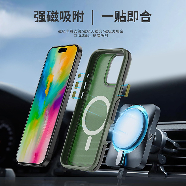 膚感磁吸適用iphone16手機殼磨砂防摔蘋果15promax保護硬殼14