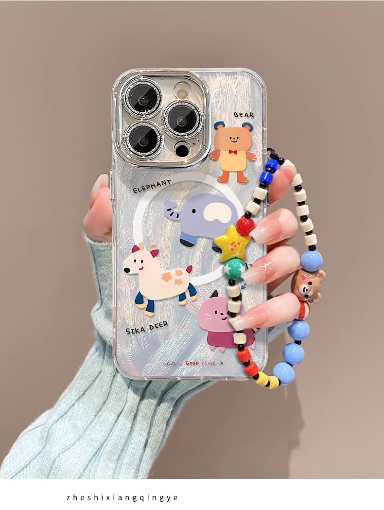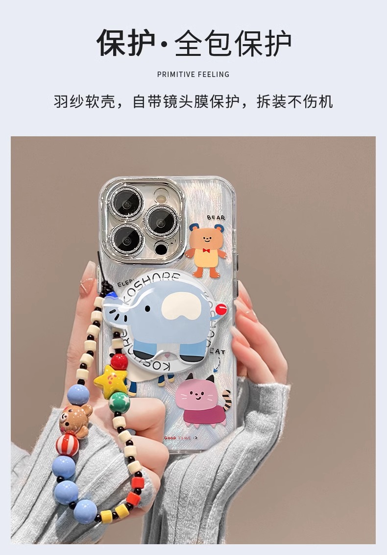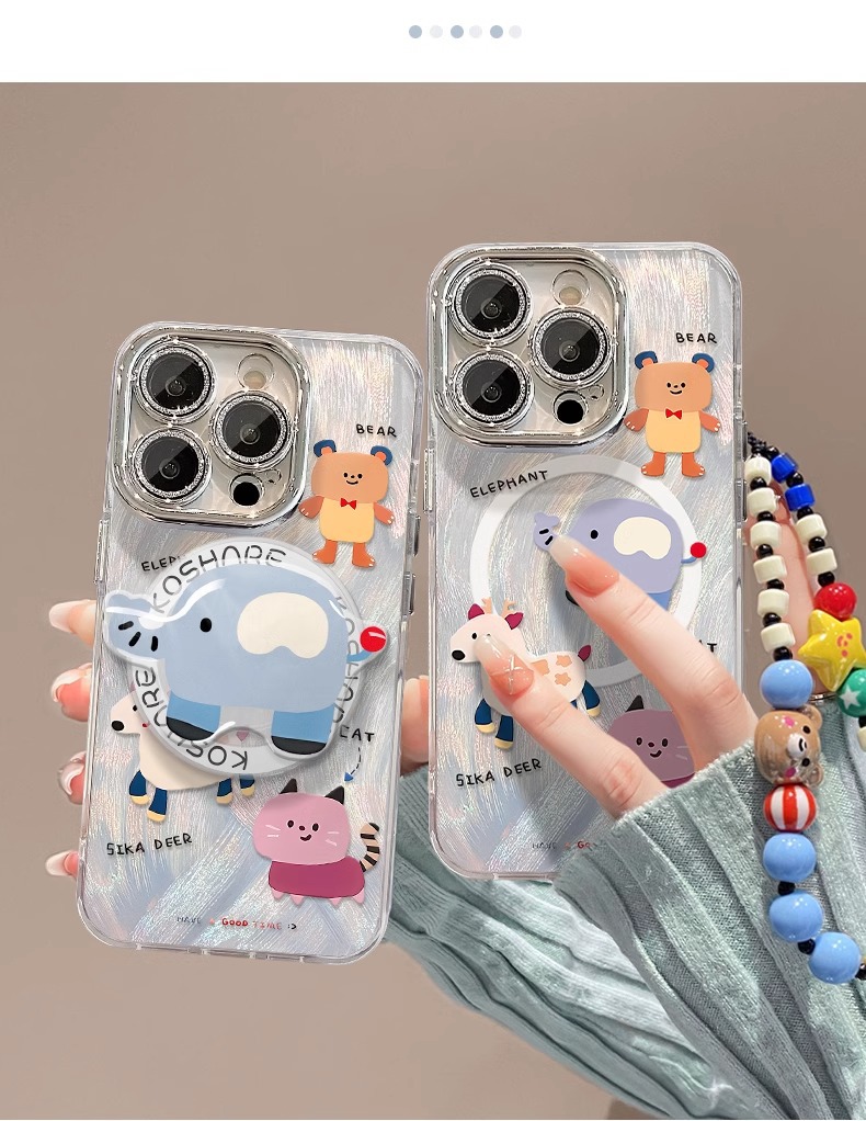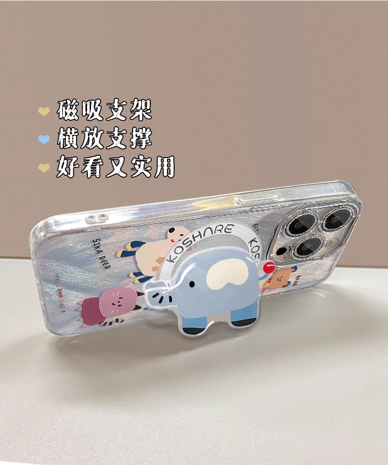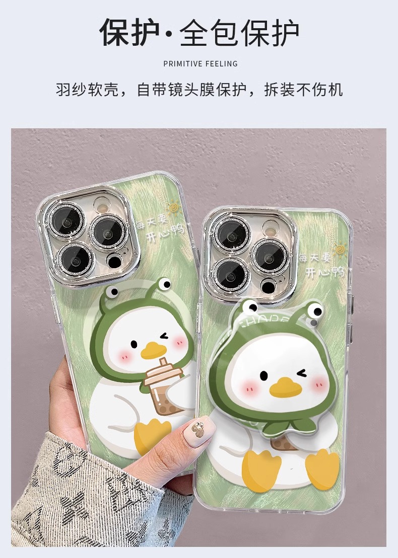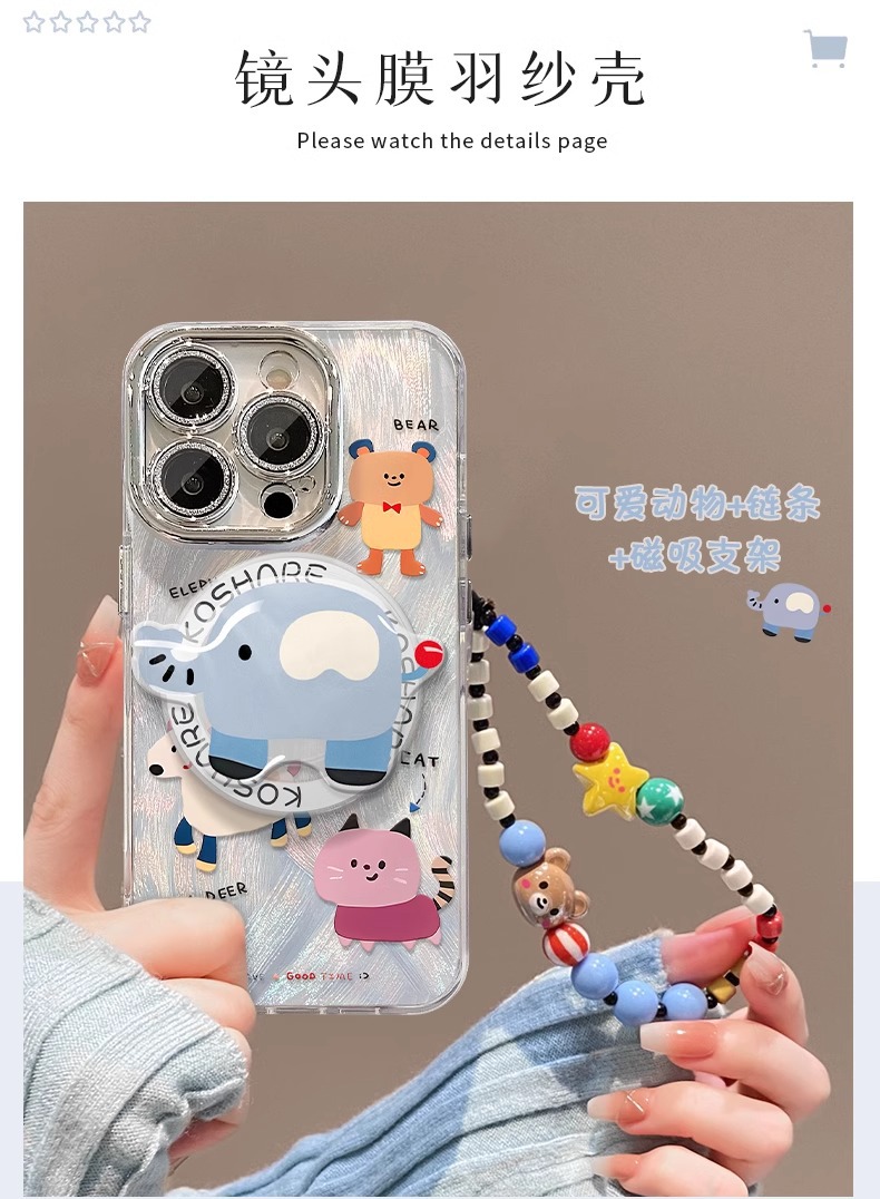 卡通動物磁吸支架鏈條適用蘋果13羽紗手機殼14PRO自帶鏡頭膜12/11
