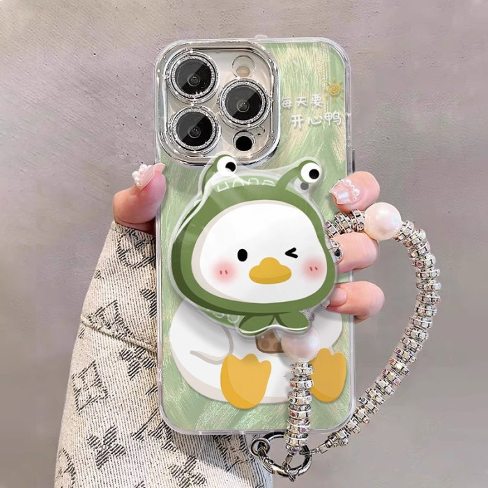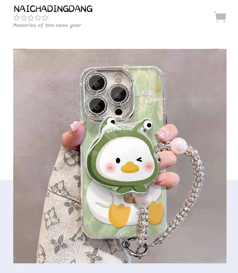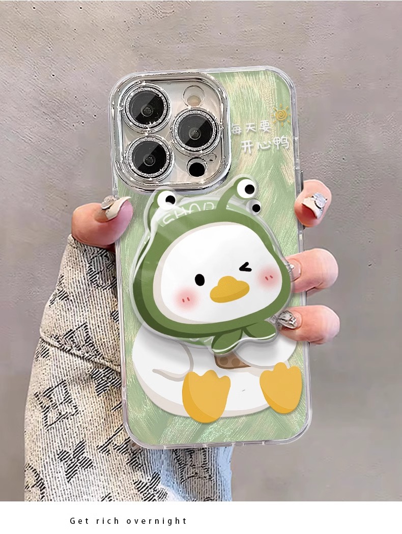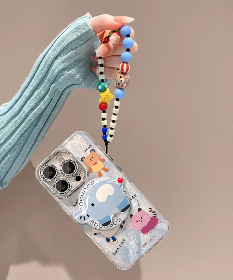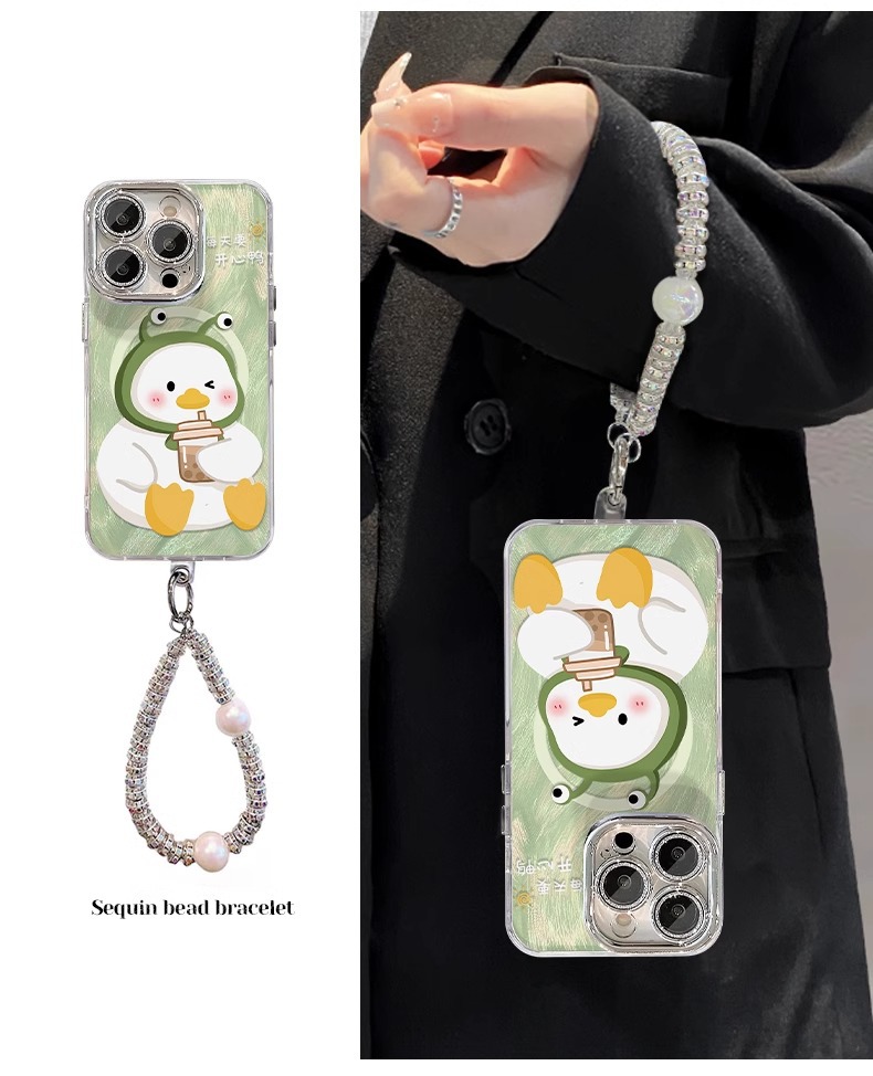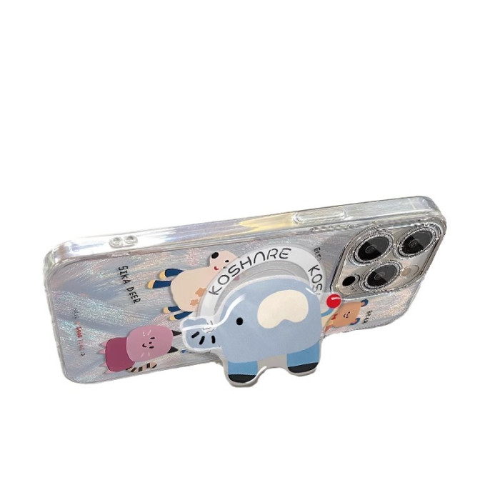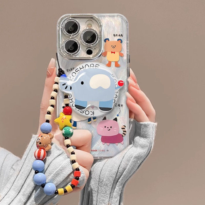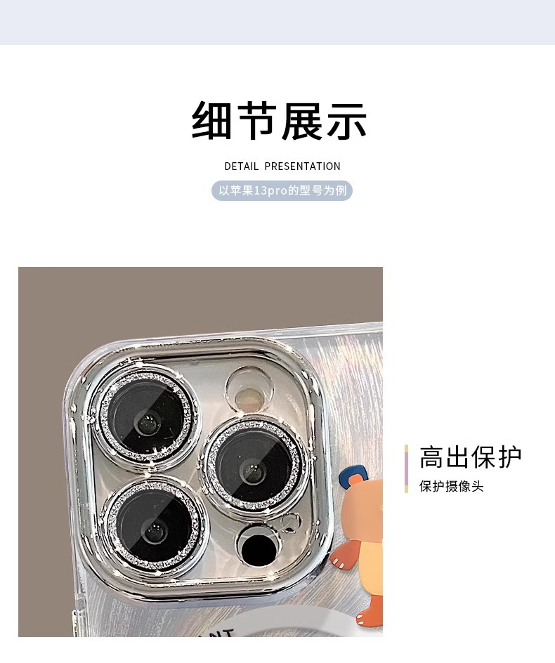卡通動物磁吸支架鏈條適用蘋果13羽紗手機殼14PRO自帶鏡頭膜12/11