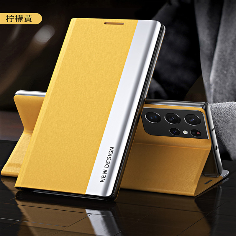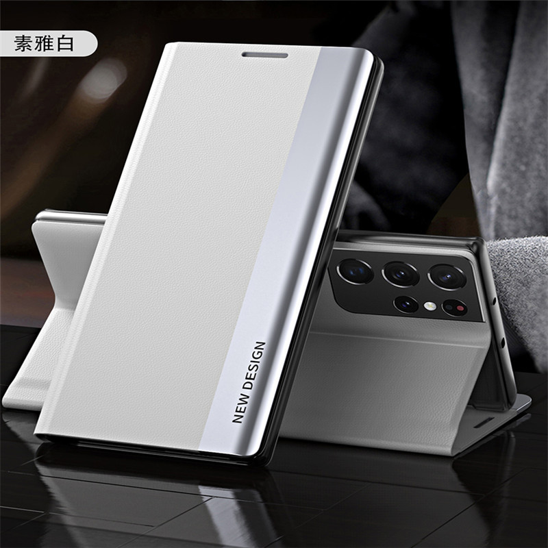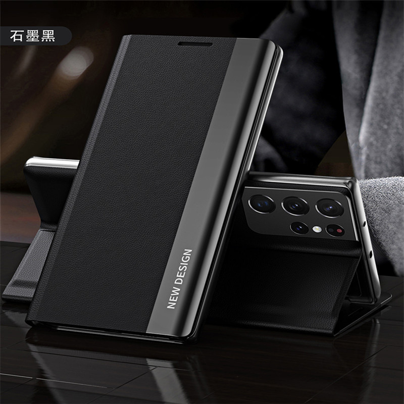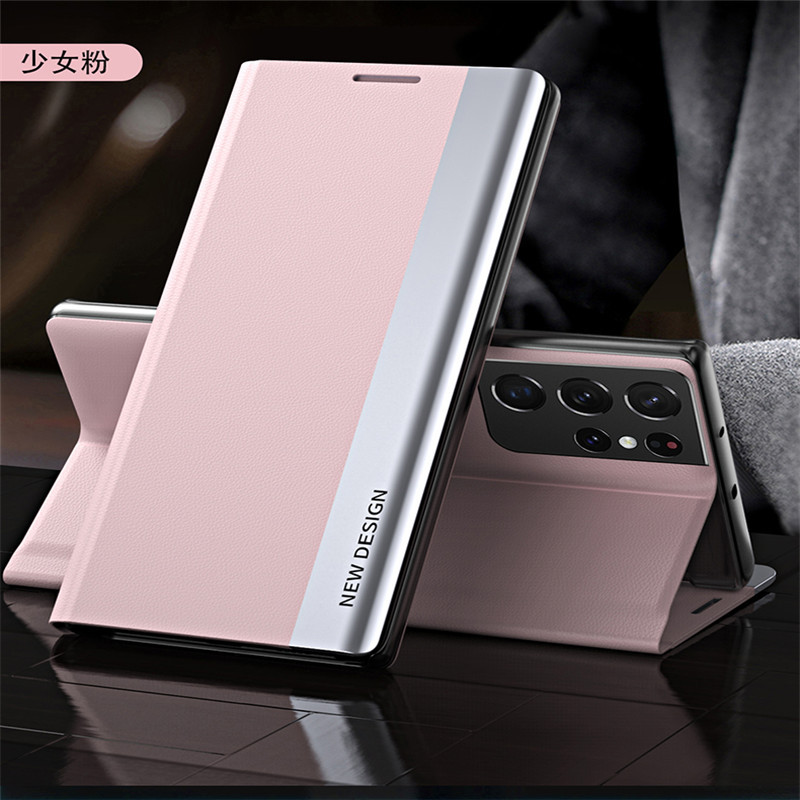 適用三星S25FE/S25ultra手機殼S24/S23/S22電鍍支架磁吸側窗皮套