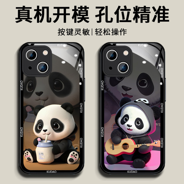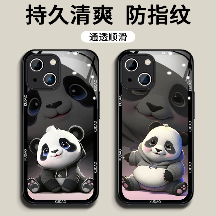熊貓蘋果15手機殼iphone14卡通13pro高級11全包xr小衆xsmax玻璃殼