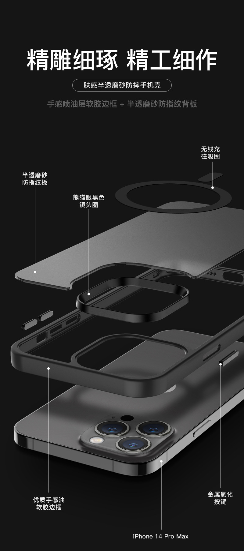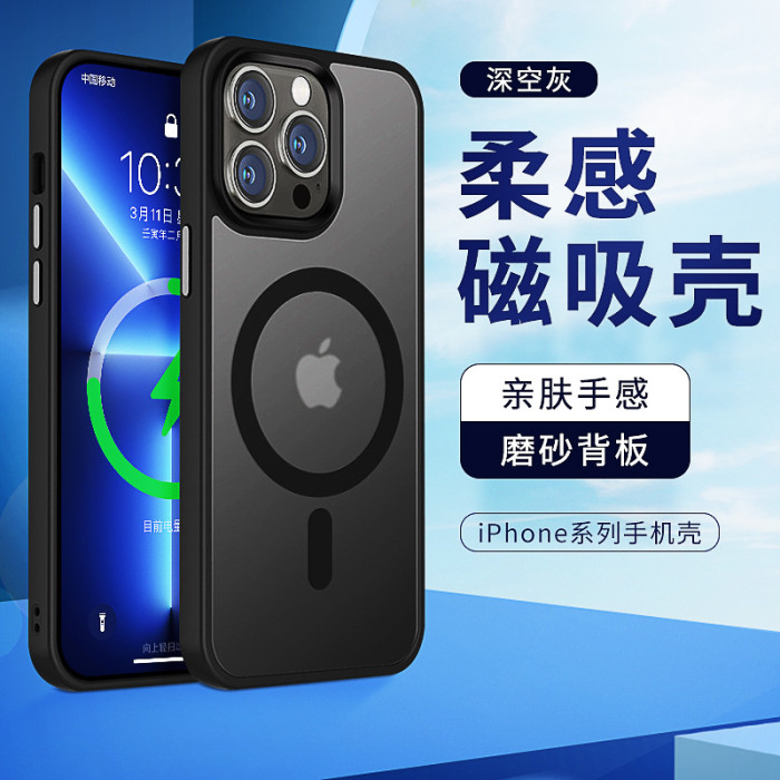 蘋果14手機殼耐髒13全包防摔磁吸手機殼膚感磨砂噴油手機套高級感