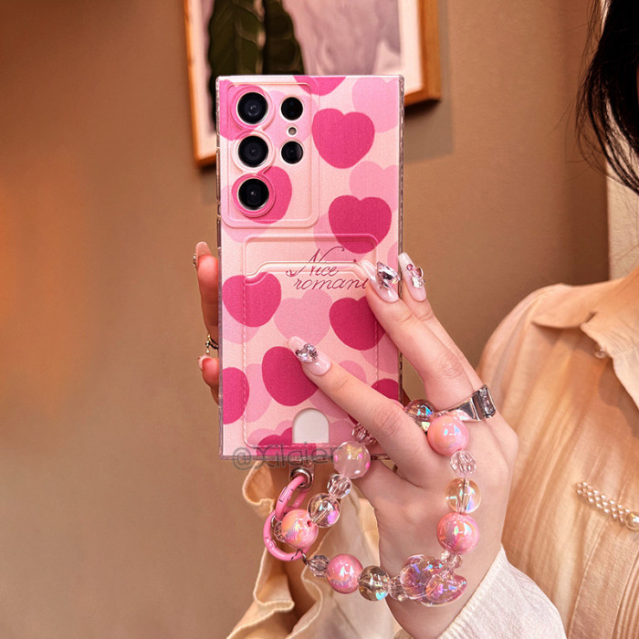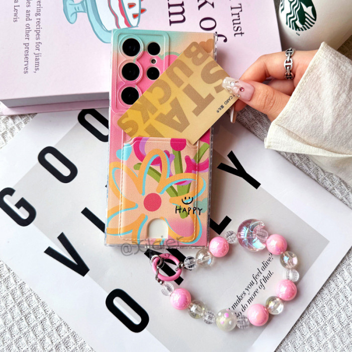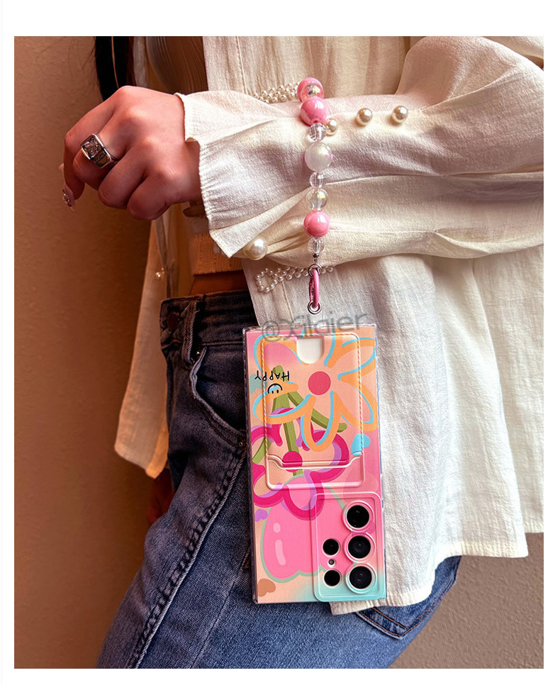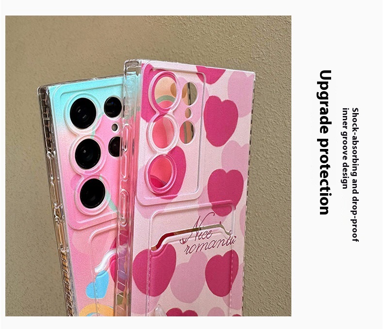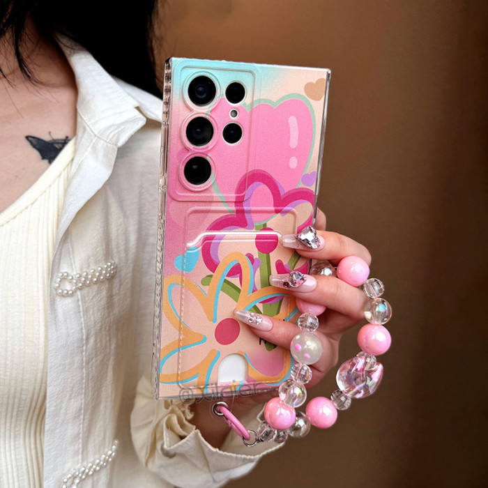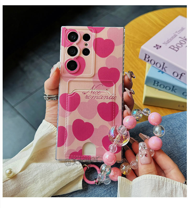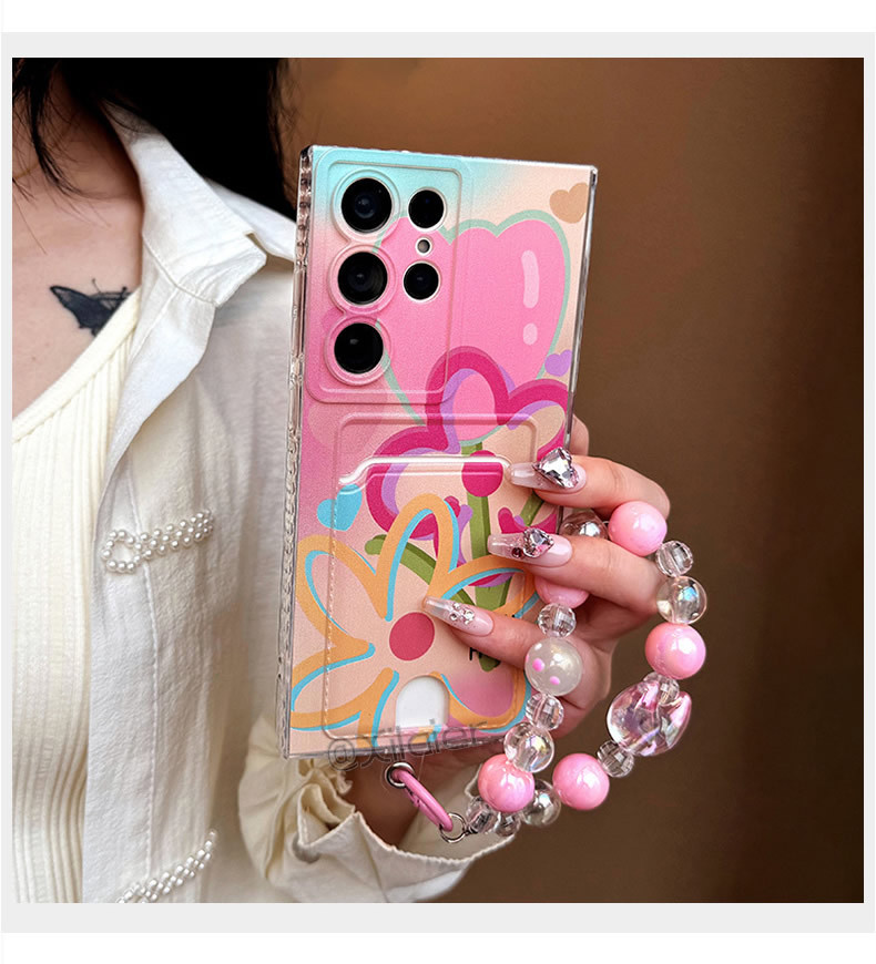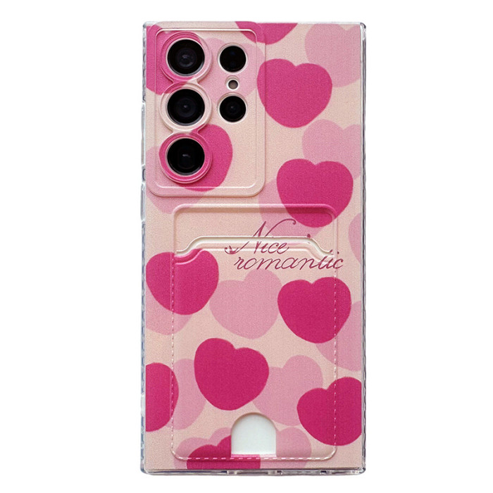 適用三星S25手機殼S23Plus花朵愛心S22Ultra透明插卡S21FE保護套