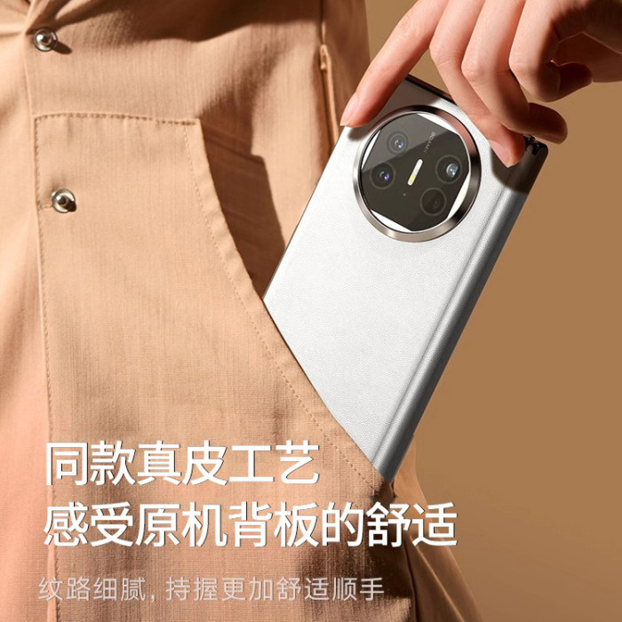 適用華爲MateX6手機殼純色矮中軸鉸鏈保護防摔輕薄時尚真皮單底殼