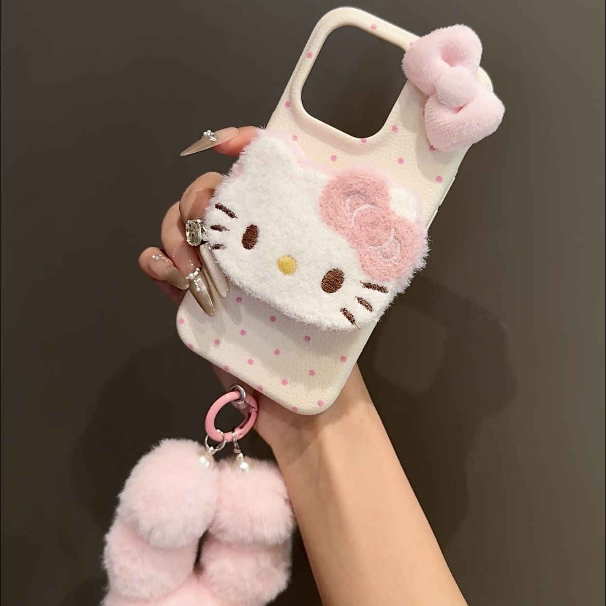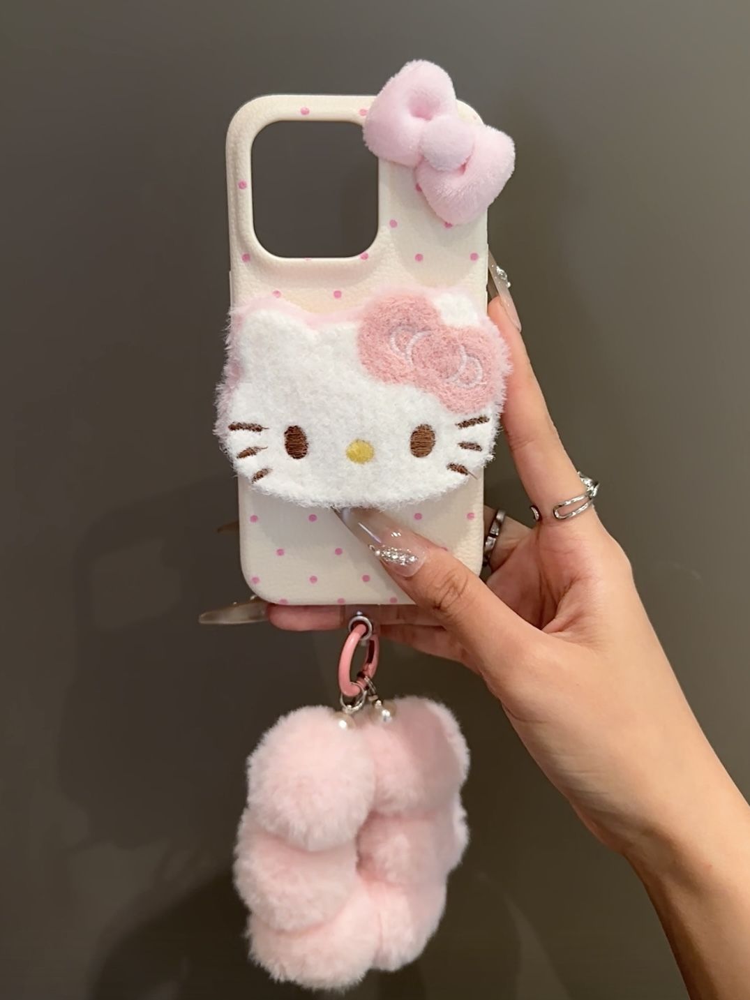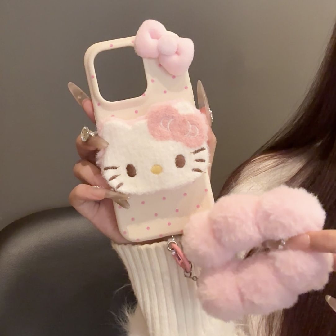 毛絨KT貓蘋果16ProMax手機殼iPhone15Pro新款13女12軟套14手繩XR