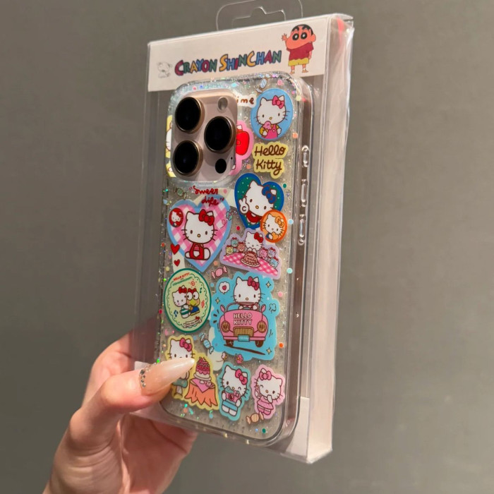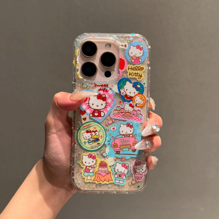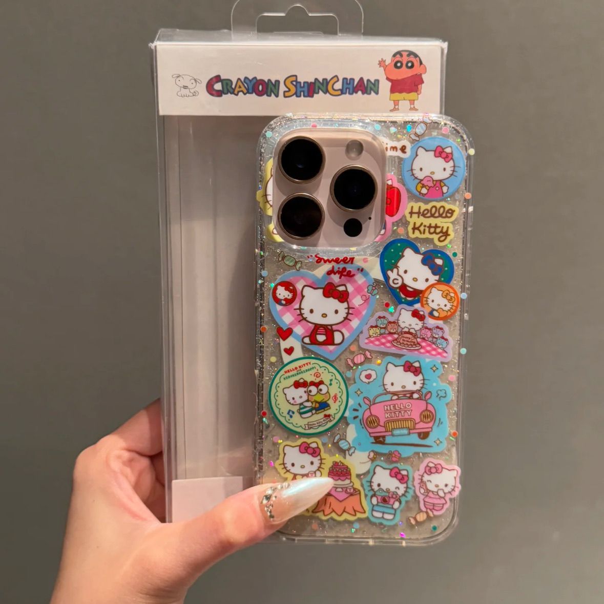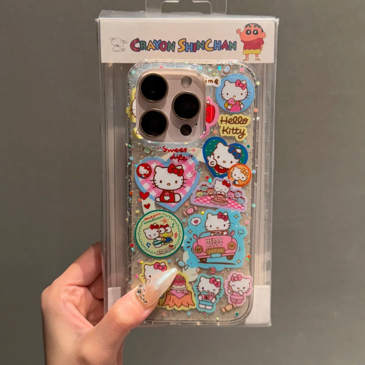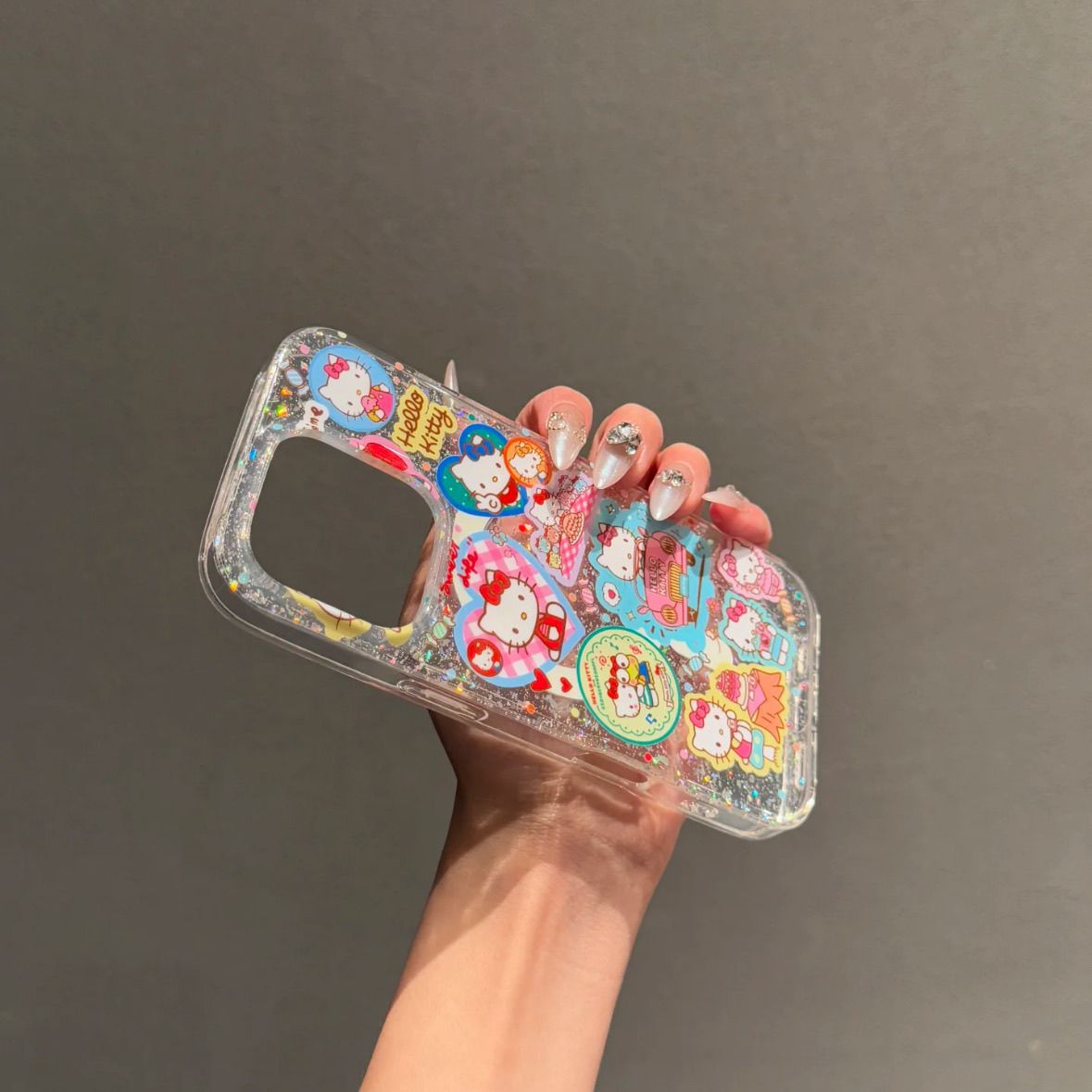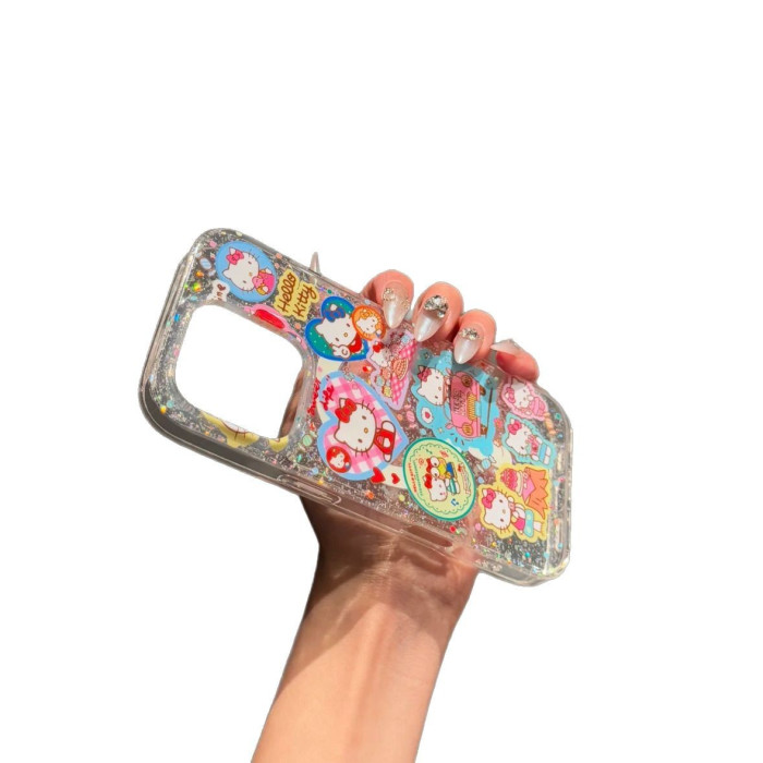 卡通貓閃粉適用蘋果15plus/16promax手機殼13pro/11硬殼12pro/xsx