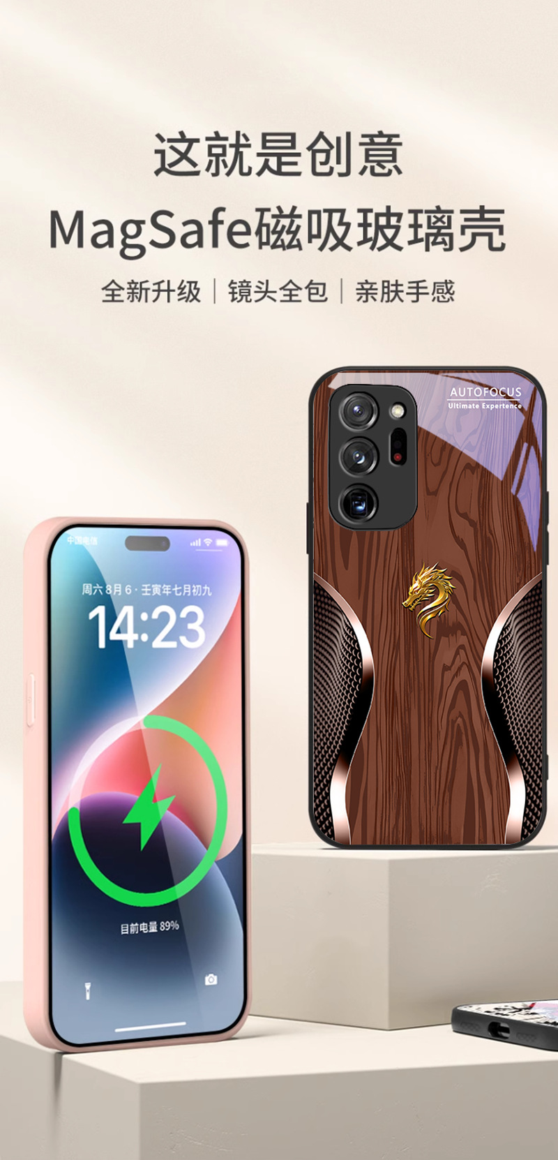 適用三星S20Ultra手機殼S21輕奢S22網格龍首23木紋24風25磁吸