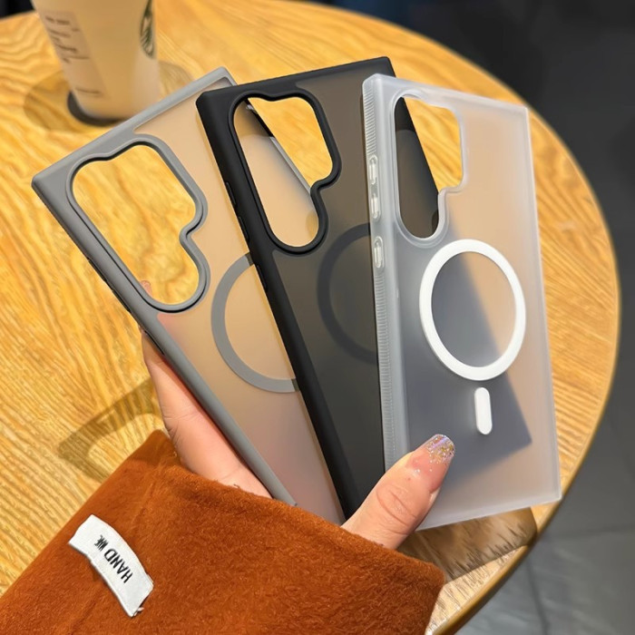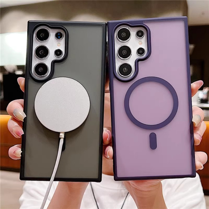 適用三星S25Ultra手機殼磁吸磨砂膚感透明GalaxyS24FE防摔保護套