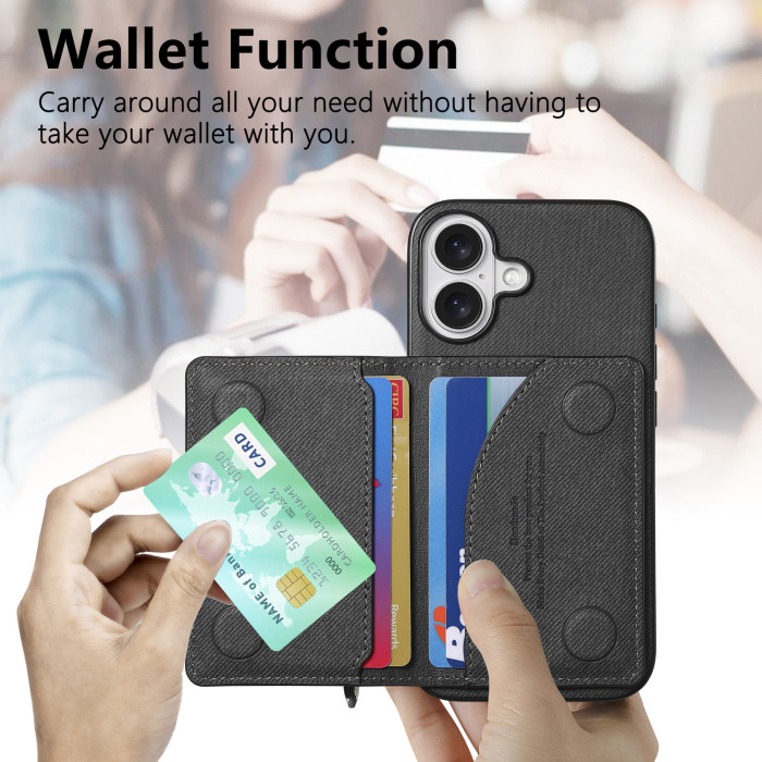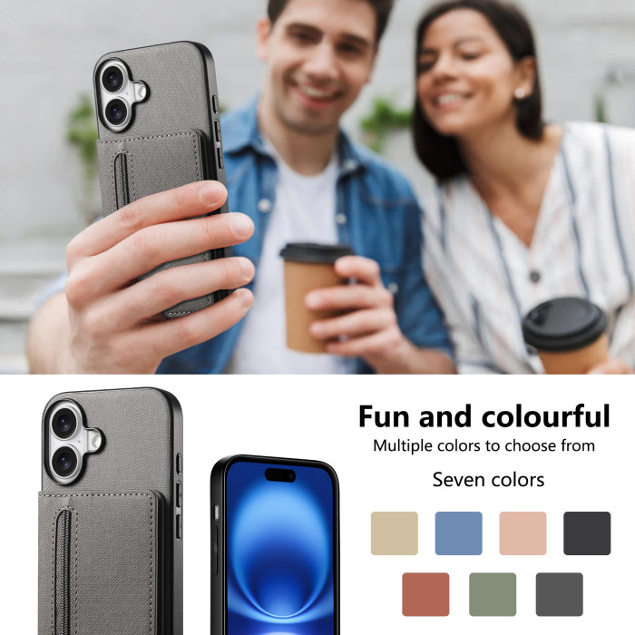 適用蘋果iPhone16pro支架手機殼大收納插卡防摔蘋果16E素皮保護套