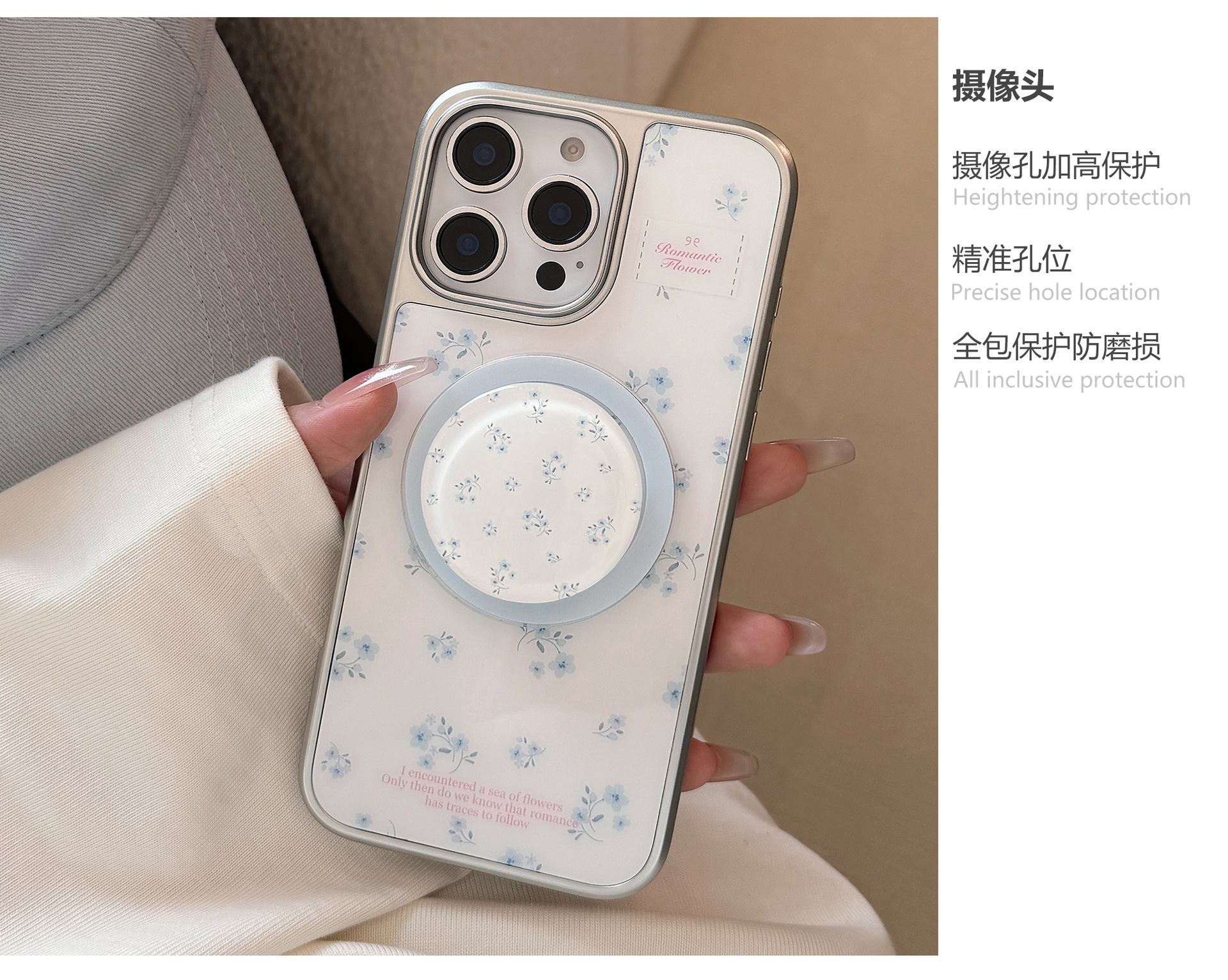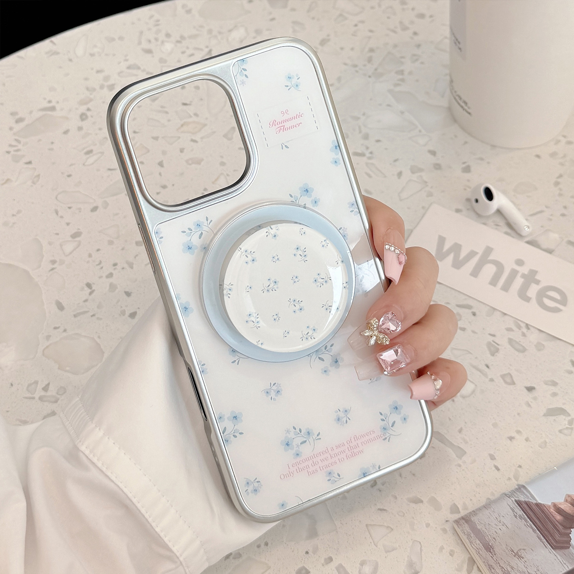 清新適用蘋果17promax手機殼iphone16電鍍13磁吸14小藍花支架12硬