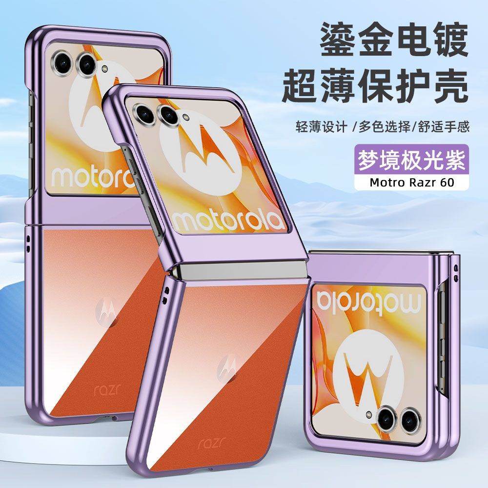 適用摩托羅拉Razr60手機殼電鍍透明超薄防摔折曡Razr2025保護殼套