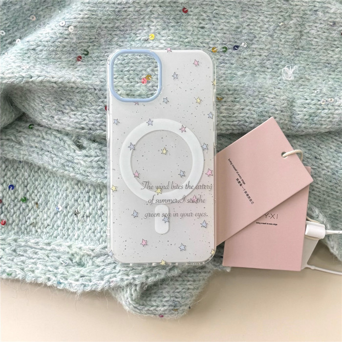 彩色星星字母手機殼適用蘋果16/15/14P簡約磁吸殼iPhone13/12卡通