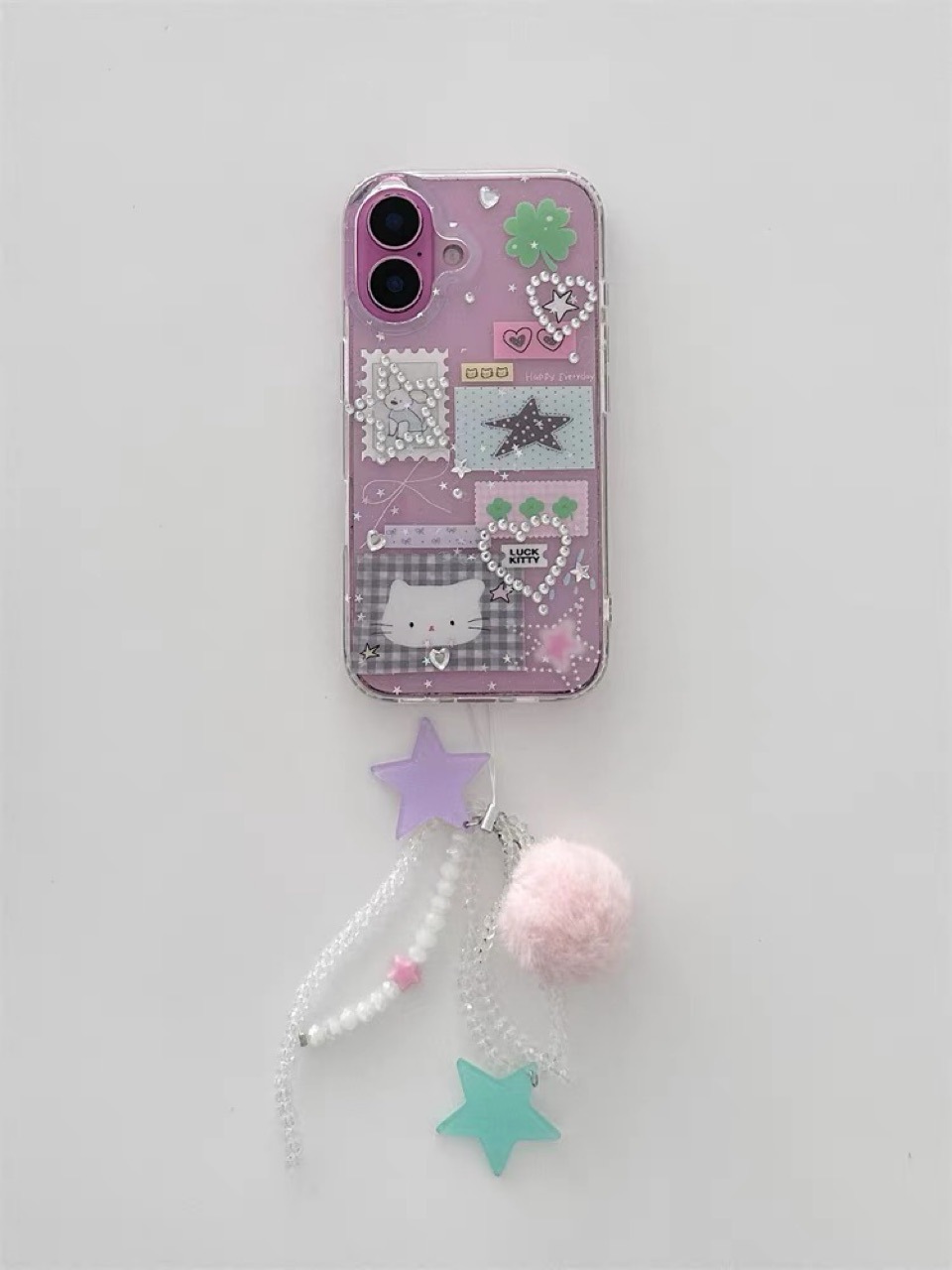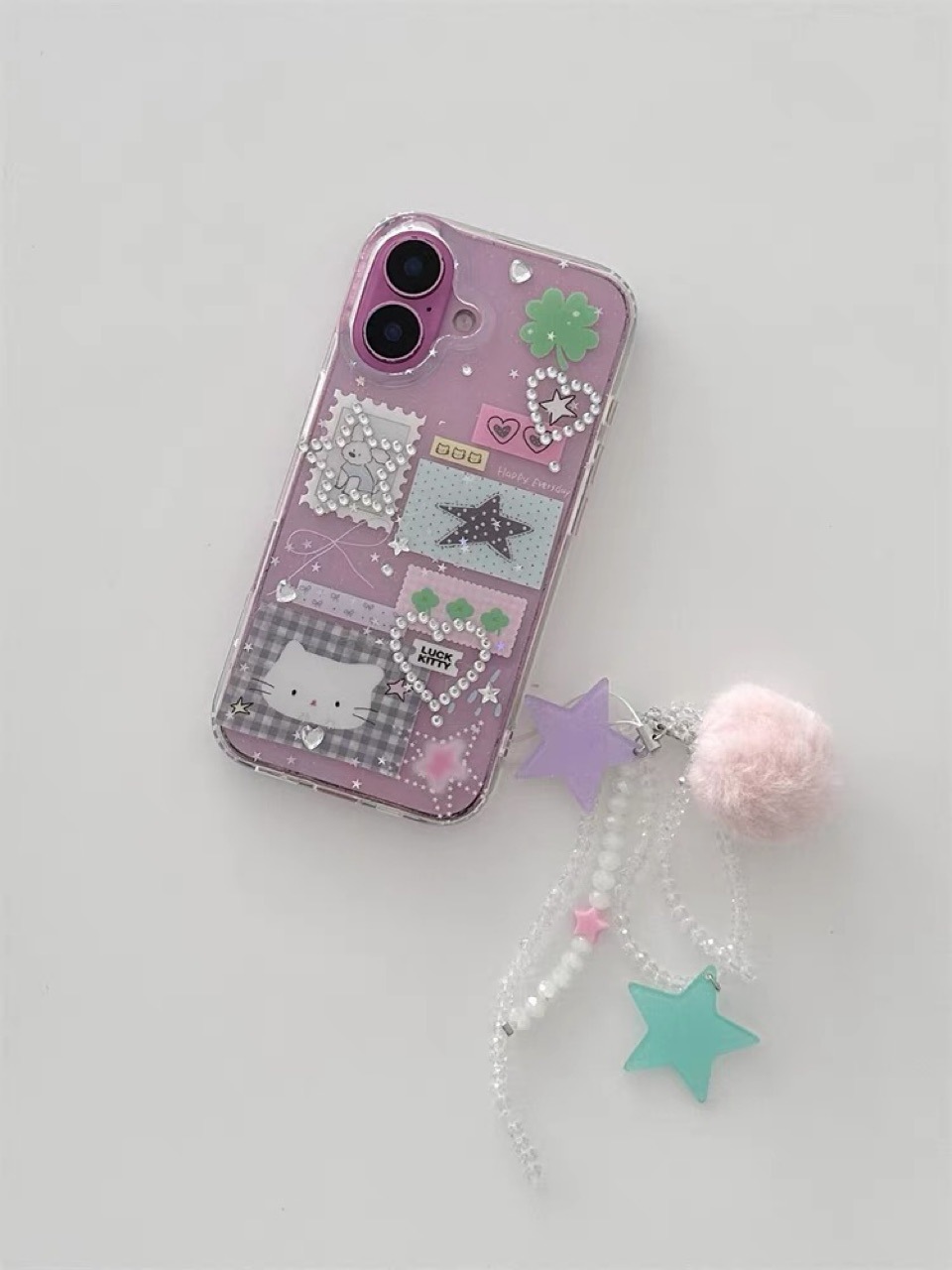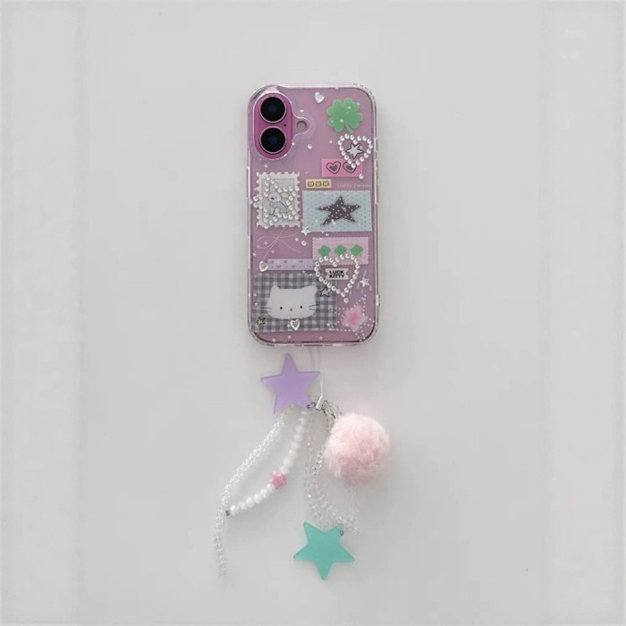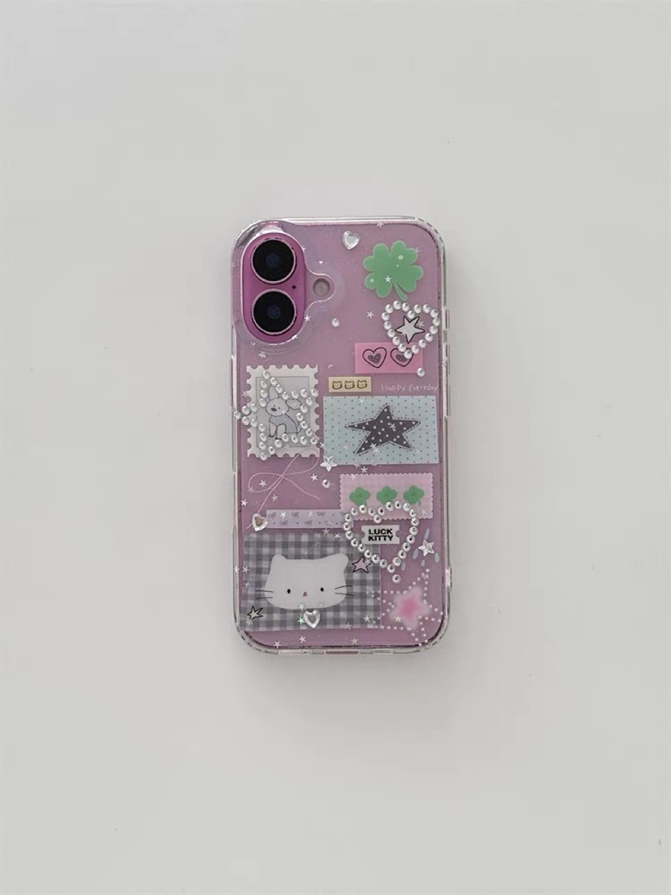 ins透明雙層小狗郵票貓咪適用iPhone16promax手機殼14蘋果