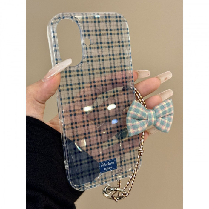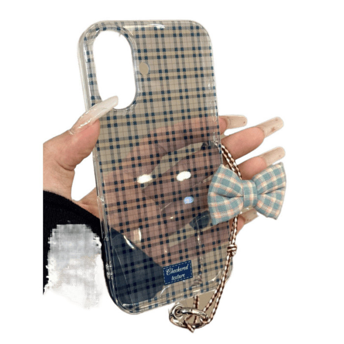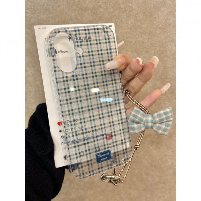 簡約藍格紋蘋果16promax手機殼iPhone15/14輕奢13/12ins風11軟殼