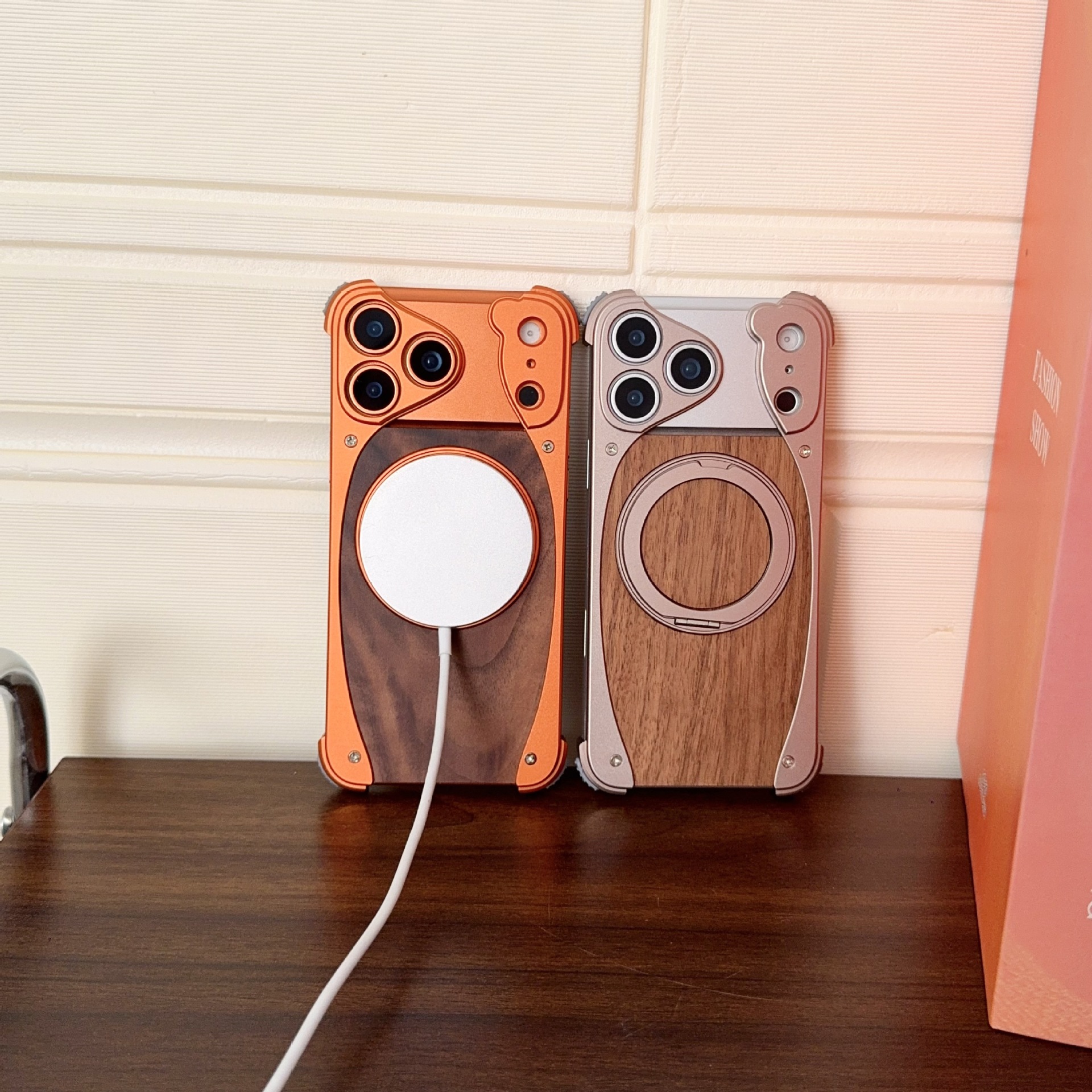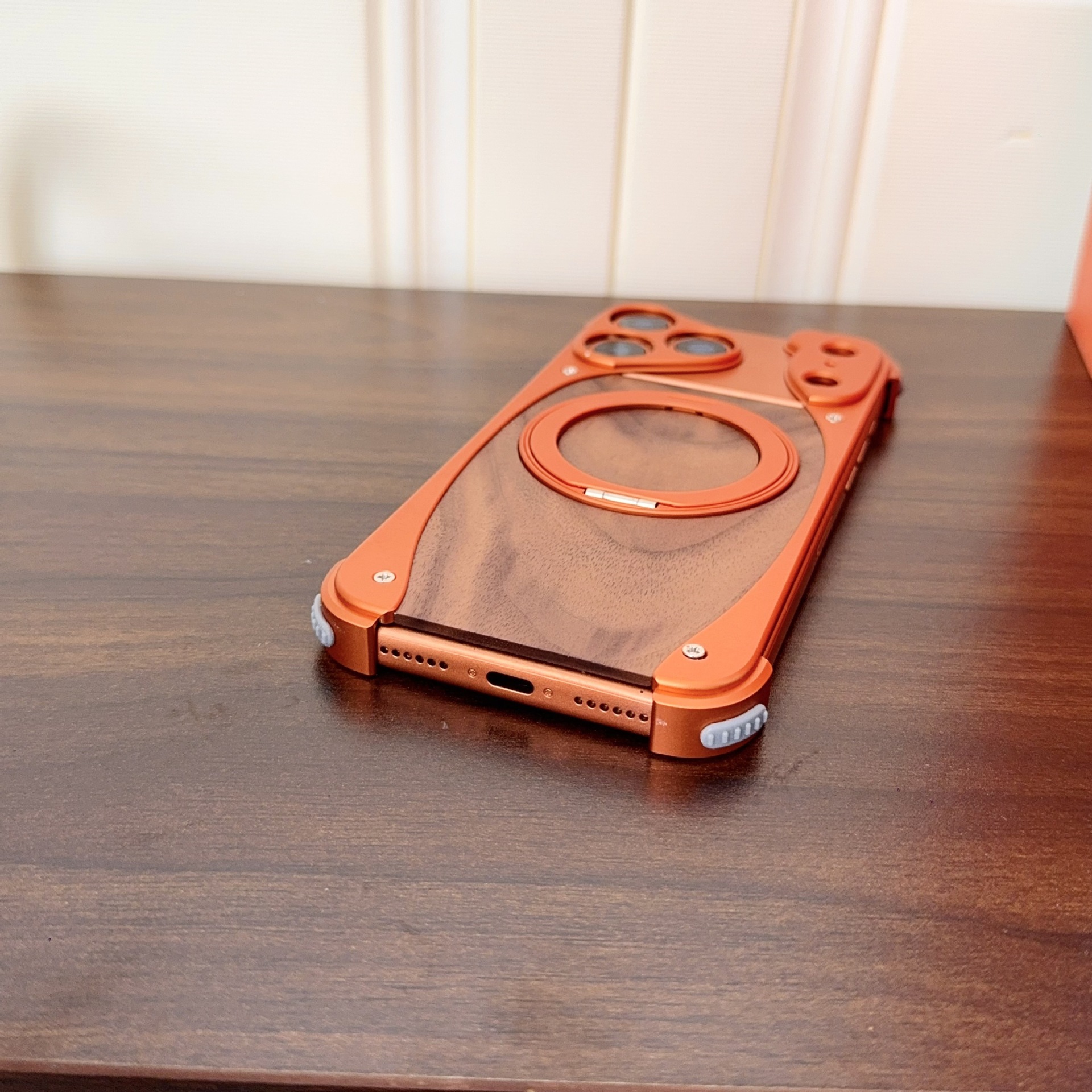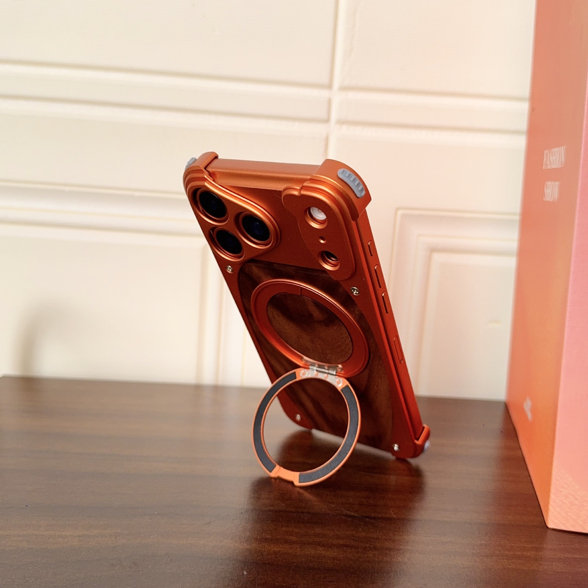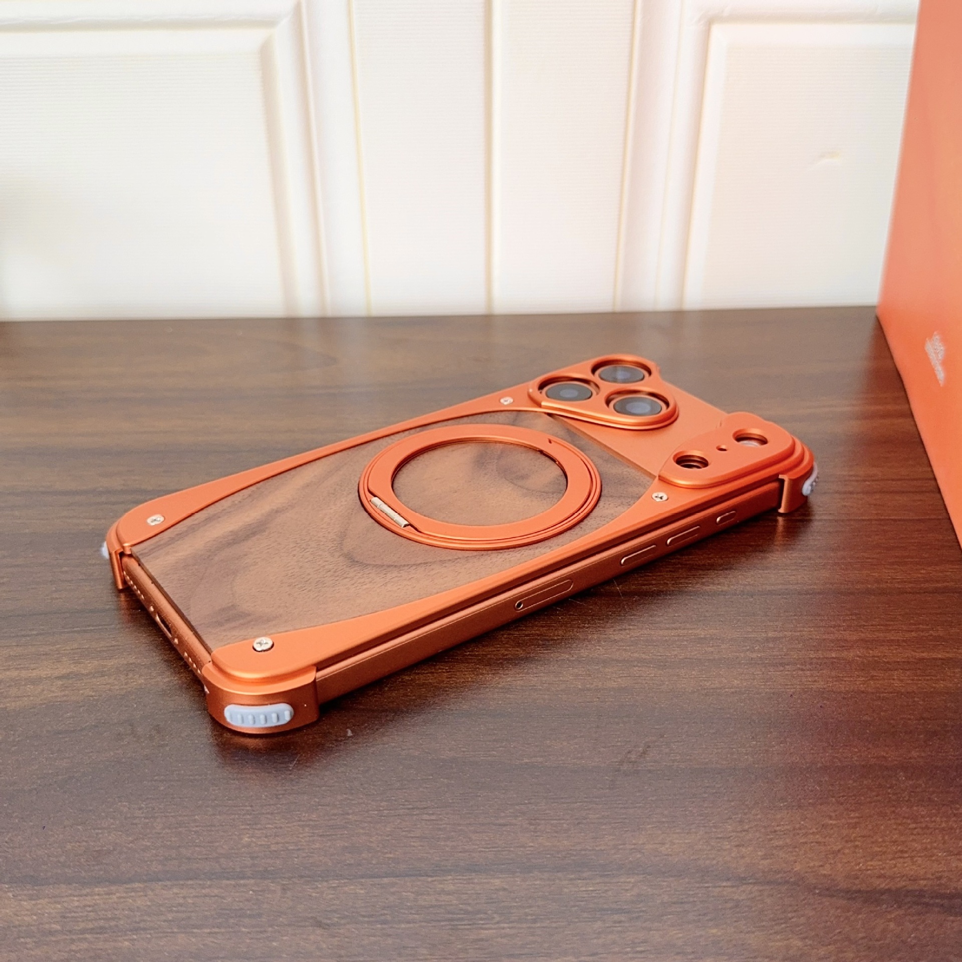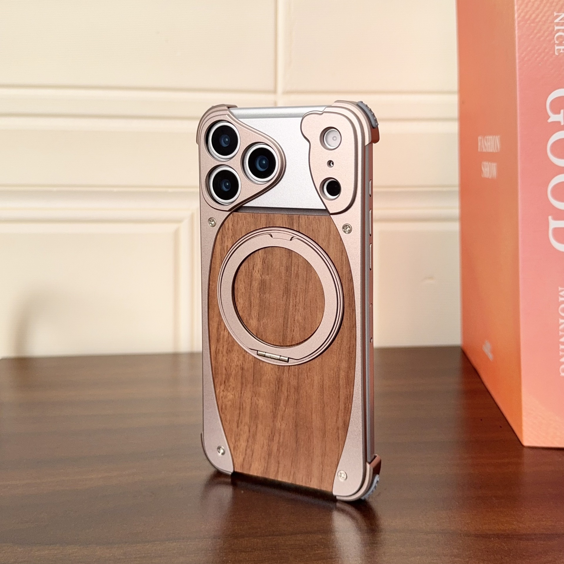 新款胡桃木適用蘋果17promax手機殼金屬旋轉支架16pro無邊框磁吸