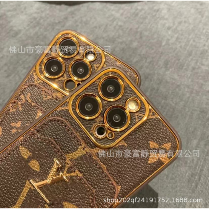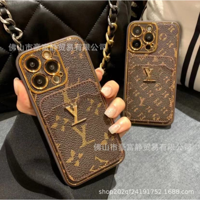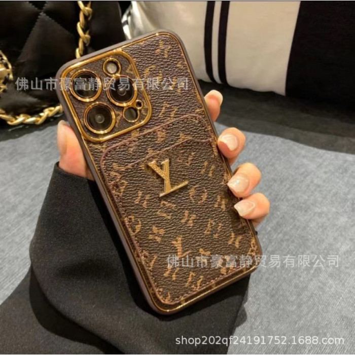 潮牌復古插卡手機殼適用蘋果15ProMax全包皮質14高級小衆男女款13