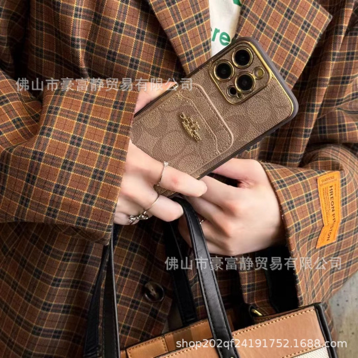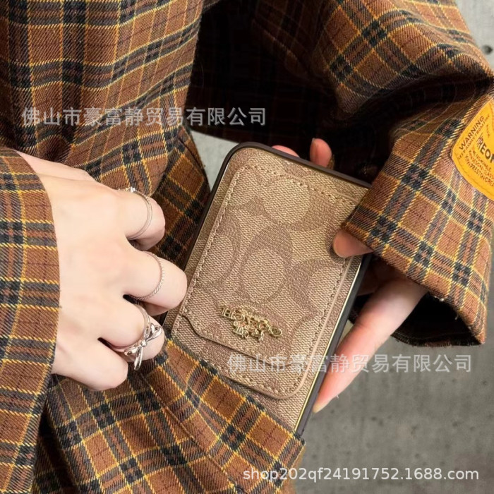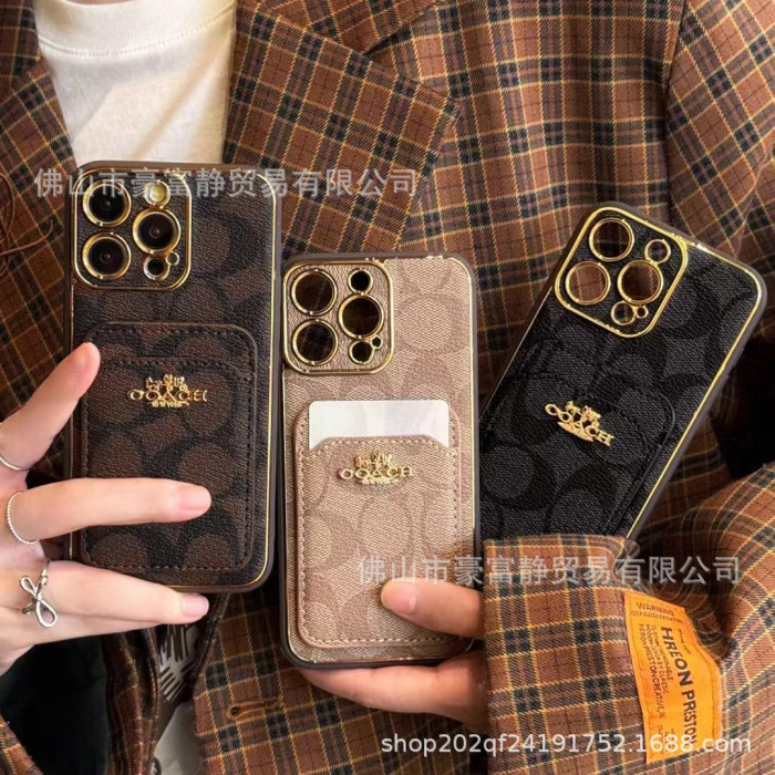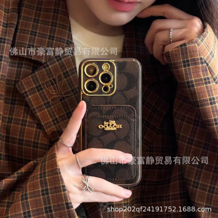 高級感插卡手機殼適用蘋果15ProMax全包皮質14Pro小衆情侶款13/12