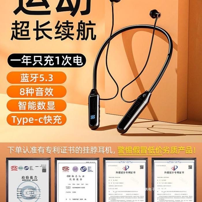 藍牙耳機無線頸掛脖式運動跑步男女超長續航2024新款適用蘋果小米