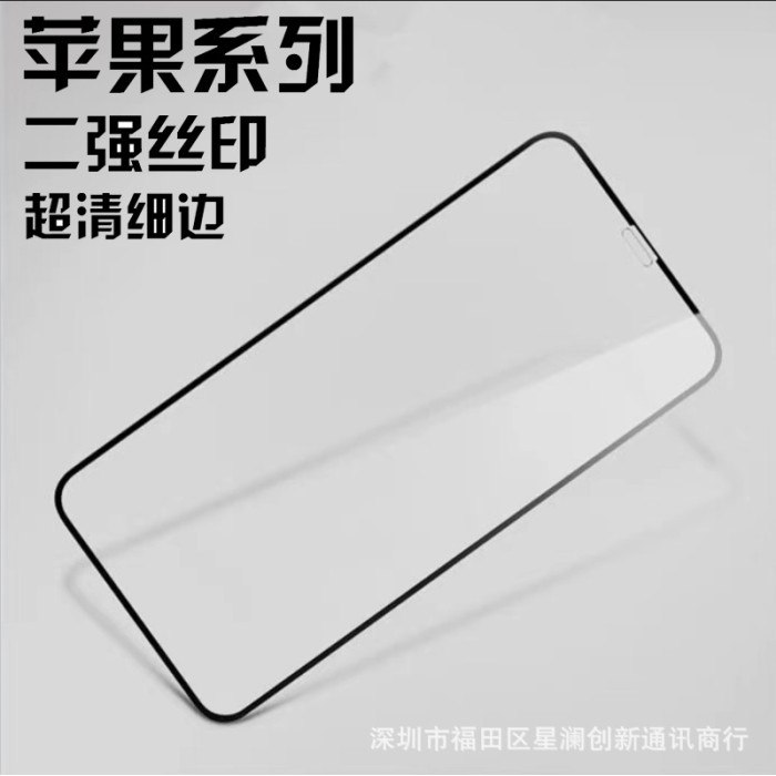 適用蘋果XR二強絲印鋼化膜12PRO黑邊絲印13promax全屏絲印鋼化膜