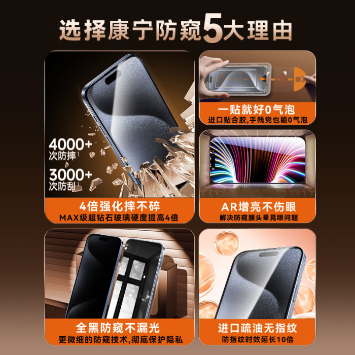 適用蘋果15promax防媮窺鋼化膜iPhone16pro手機膜13全屏14無塵倉