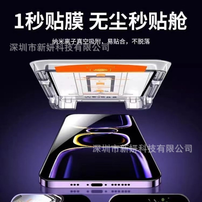 LM抽拉無塵倉蘋果16Pm康寧鋼化膜高清磨砂360防窺防窺紫光手機膜
