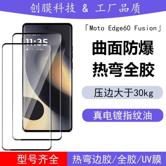 適用摩托羅拉Edge60Fusion鋼化膜 50Pro高清熱彎全膠UV玻璃貼 60s