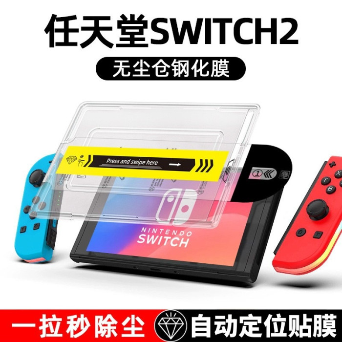 適用任天堂Switch2遊戯機鋼化膜無塵倉自動除塵秒貼艙螢幕保護膜