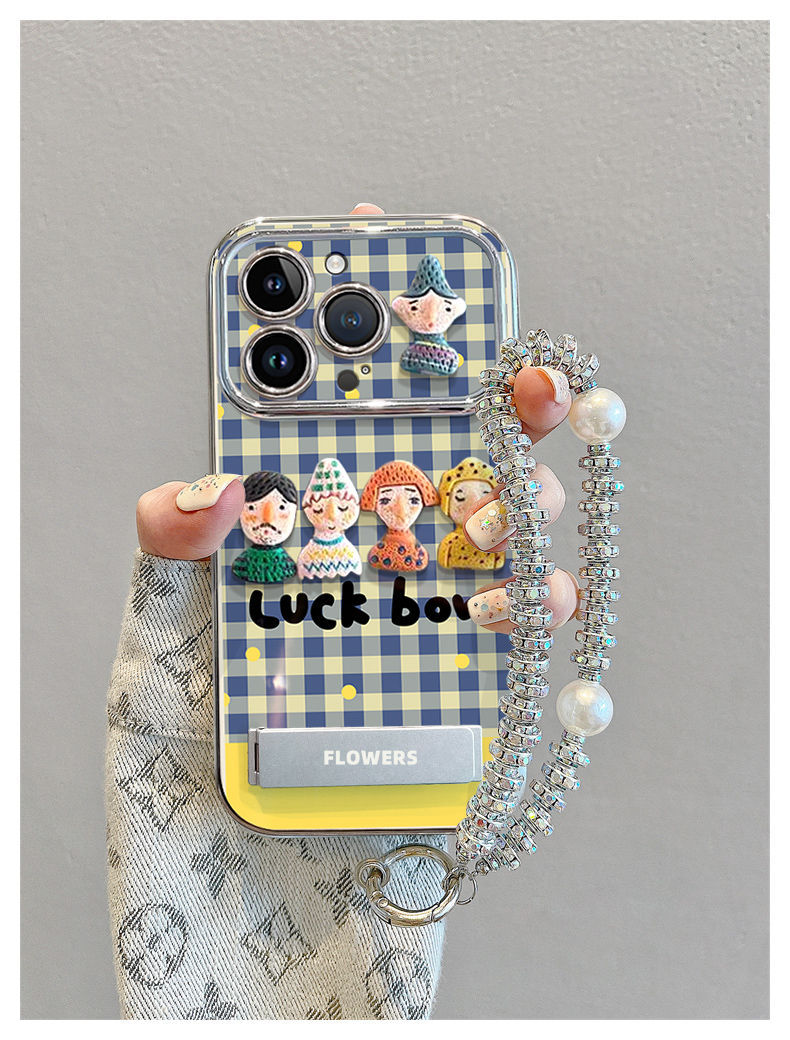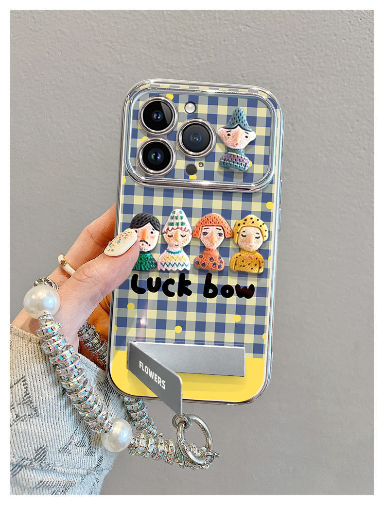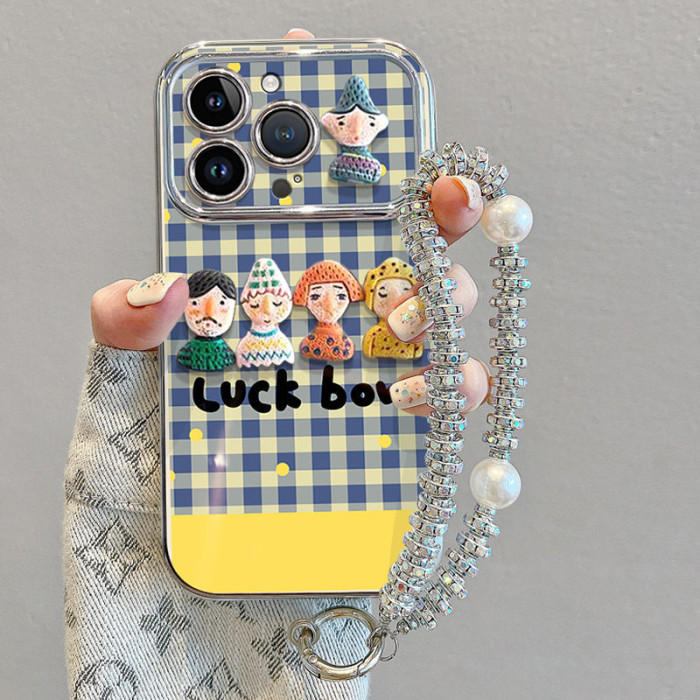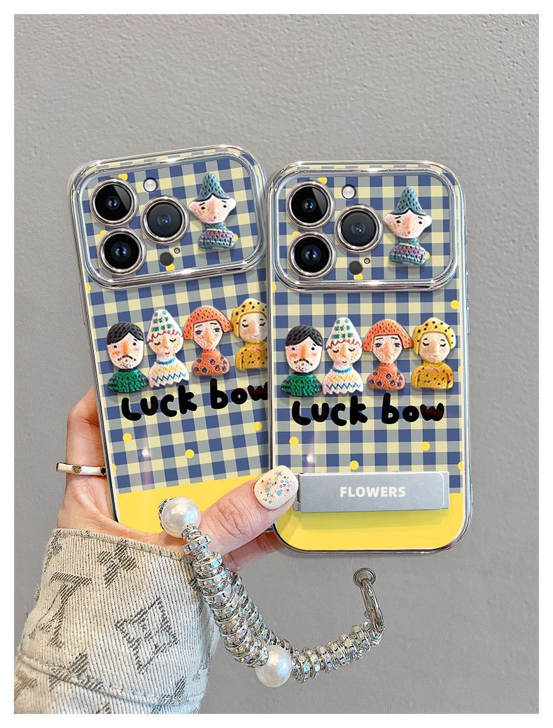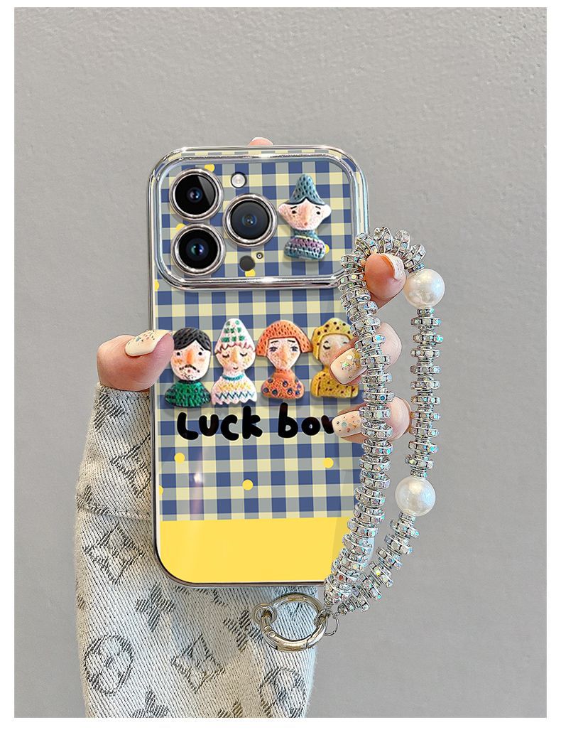 適用蘋果17pro手機殼新款帶掛繩蘋果16高級感小衆格紋公仔人物