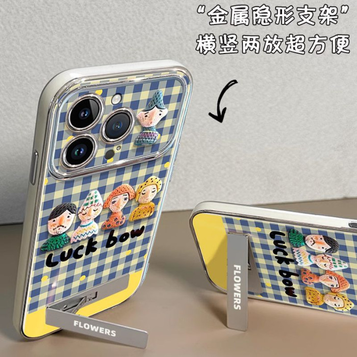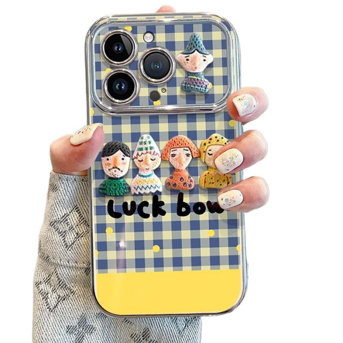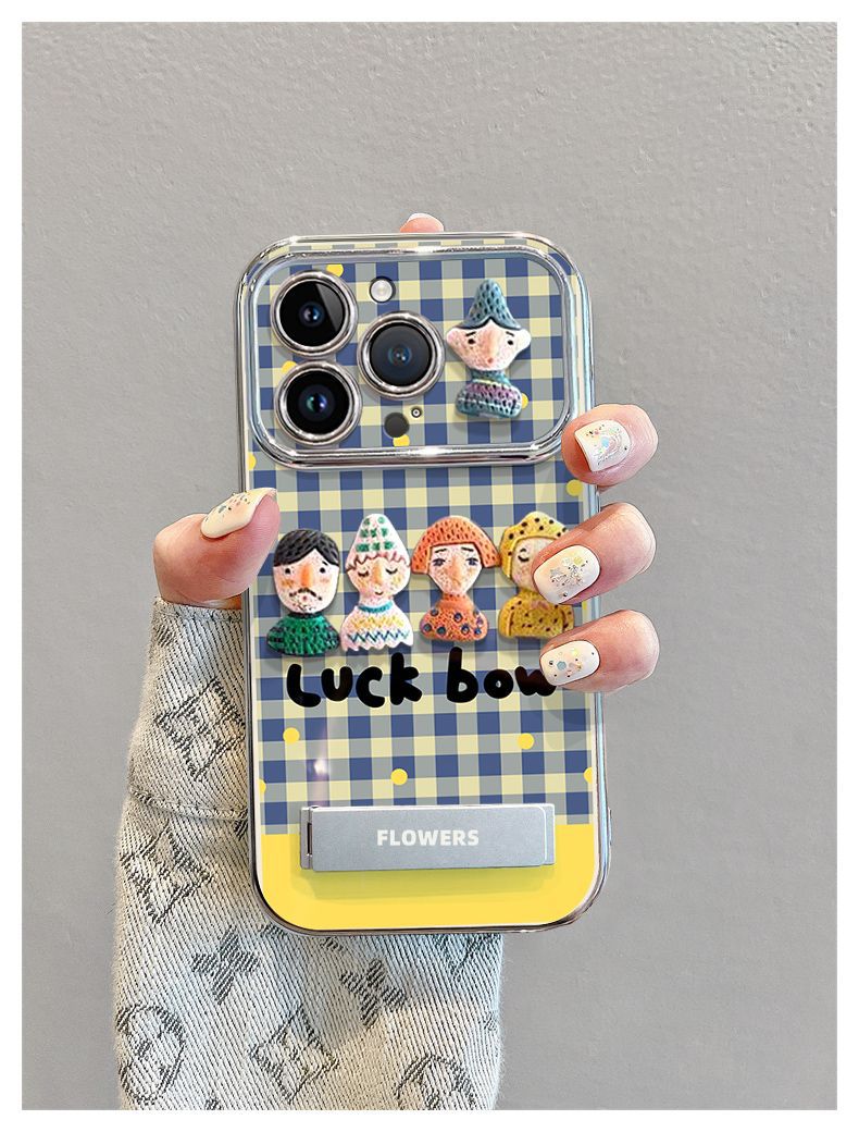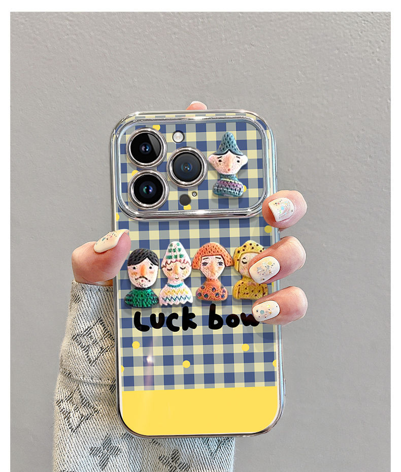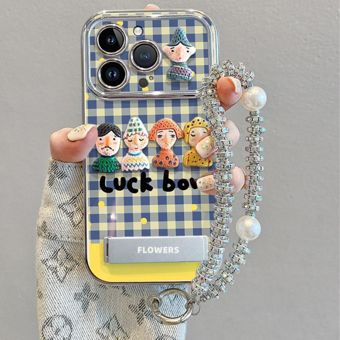 適用蘋果17pro手機殼新款帶掛繩蘋果16高級感小衆格紋公仔人物