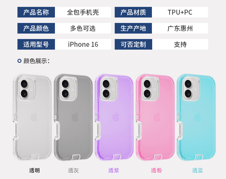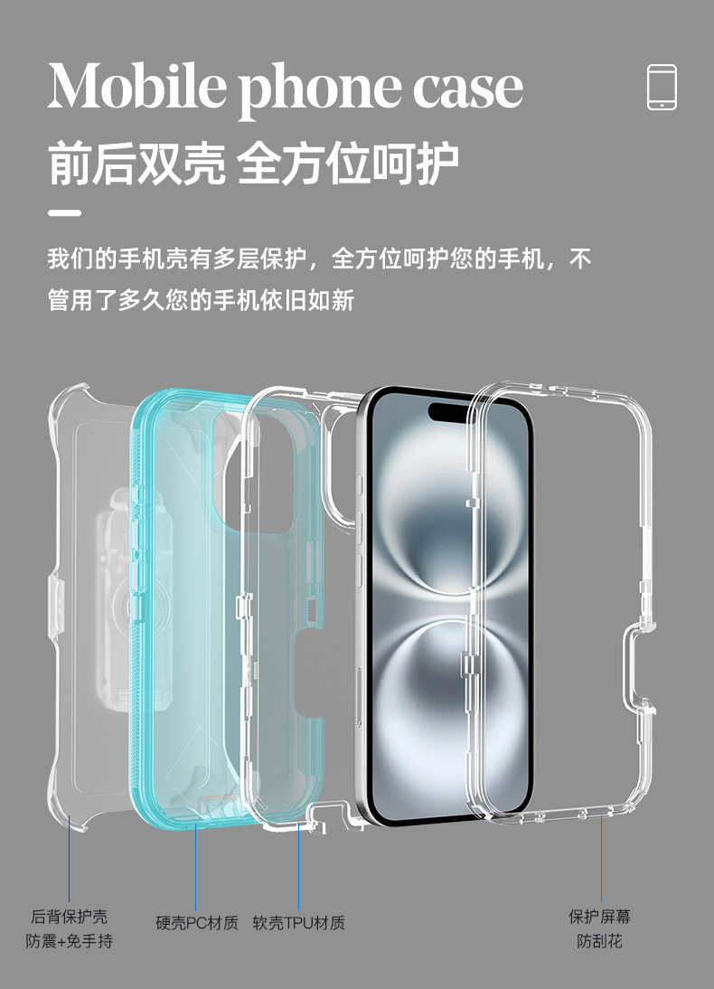 款ip16透明手機殼蘋果16手機保護套iphone16三合一保護殼