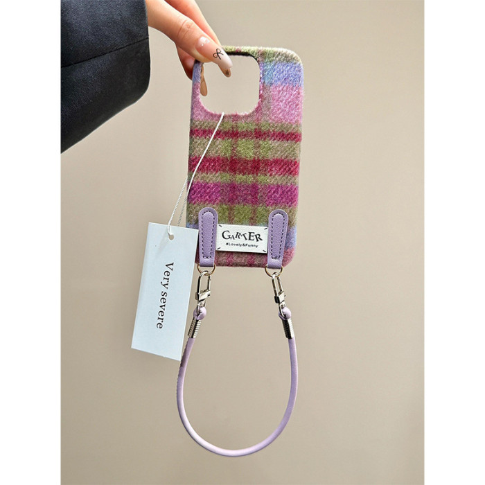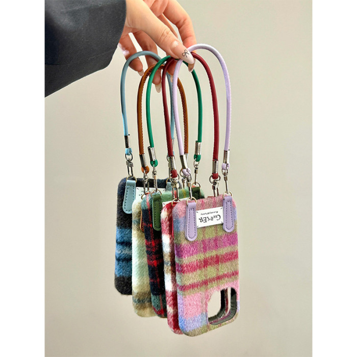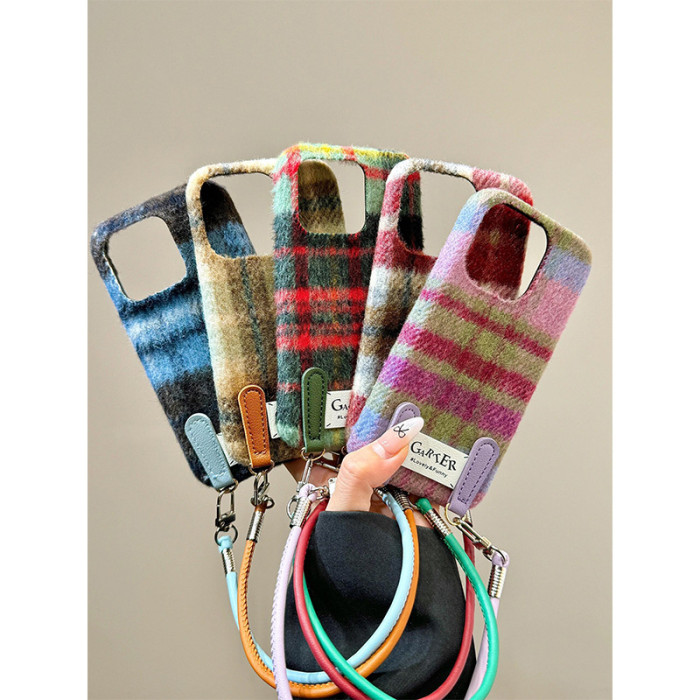 古衆好ins秋冬絨布撞色格紋適用蘋果16promax手機殼iPhone15新款1
