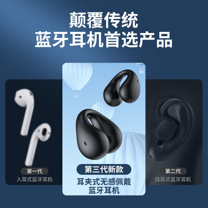 新款Q80夾耳式骨傳導無線藍牙耳機空氣傳導智能數顯運動耳機