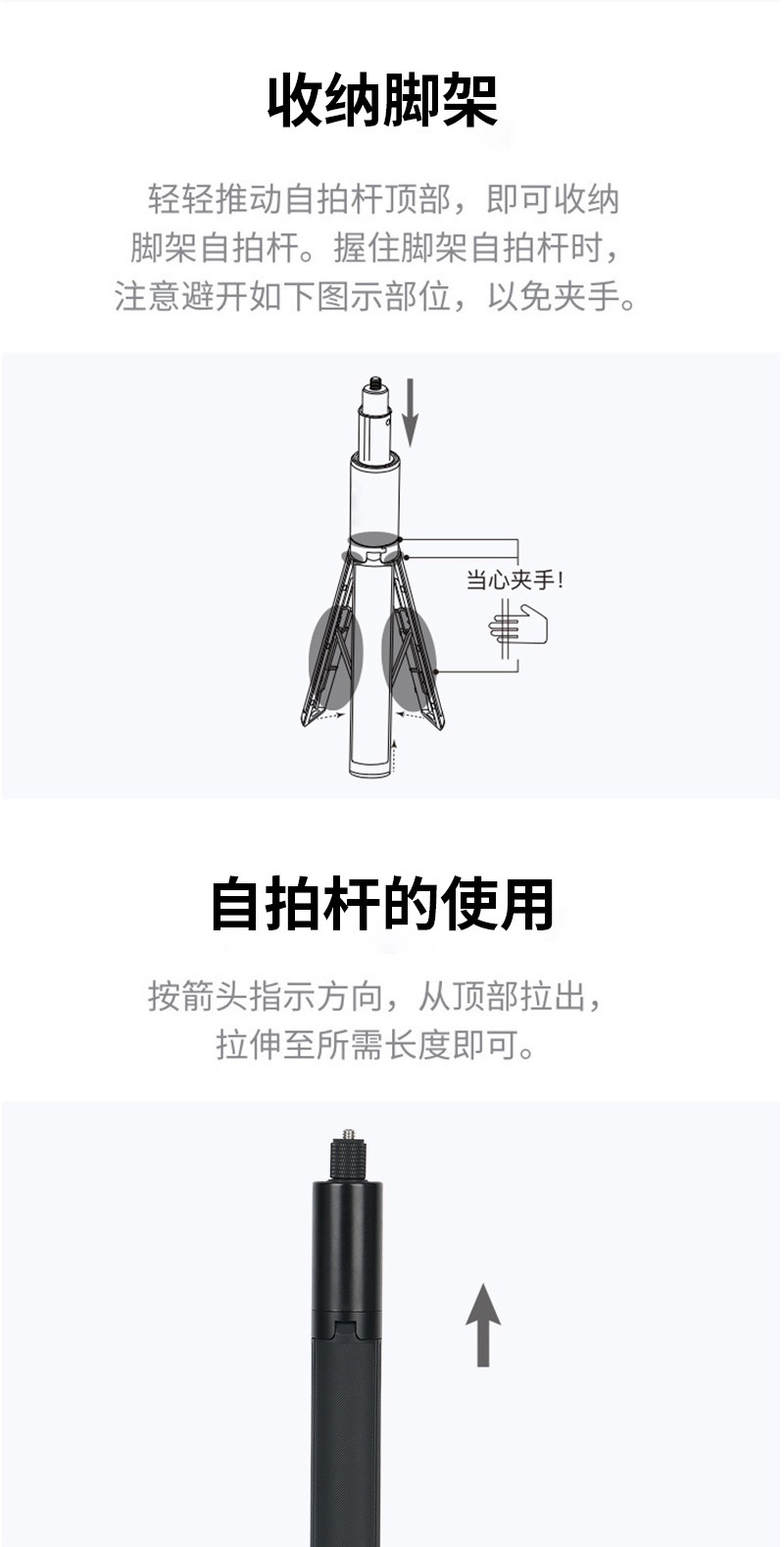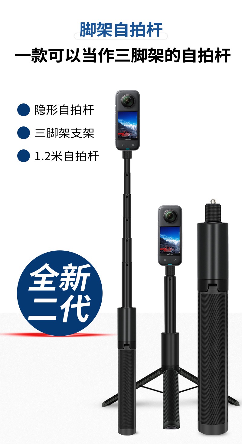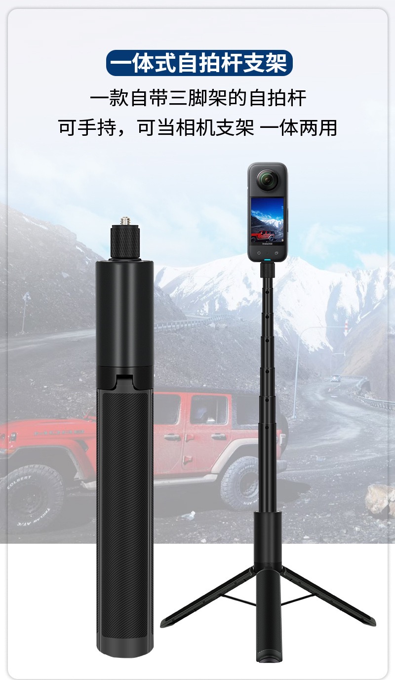 Insta360影石X4/X3/RS副廠自拍桿三腳架X2R子彈時間隱形手柄延長