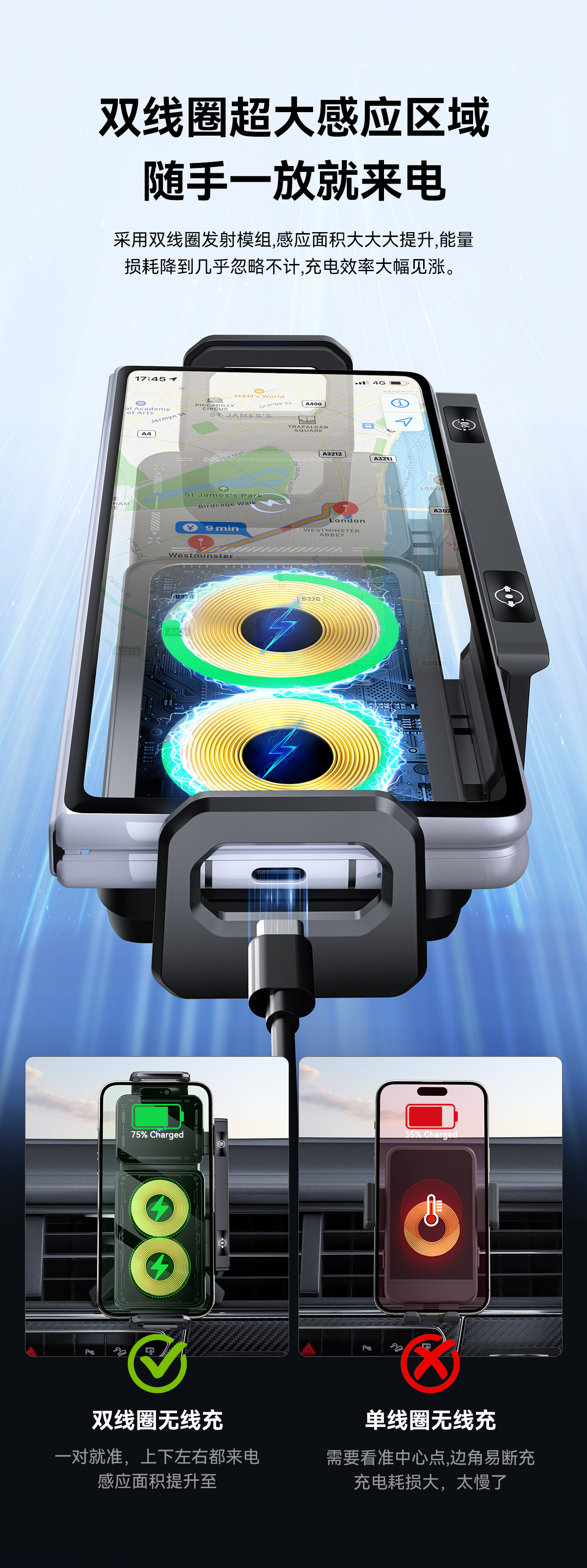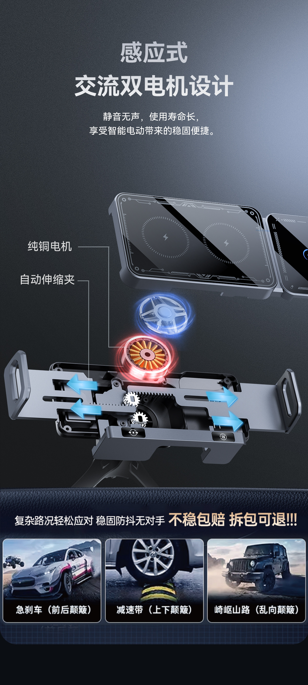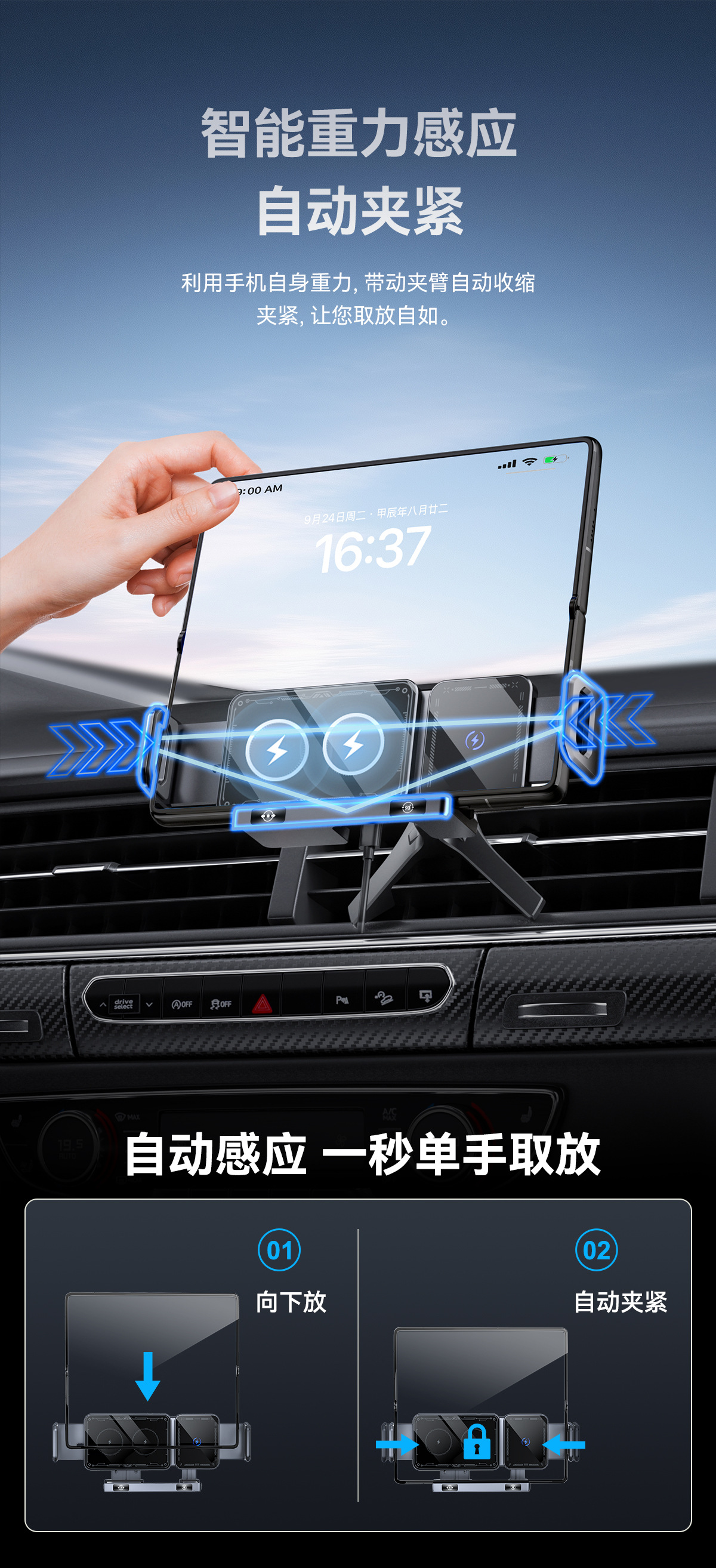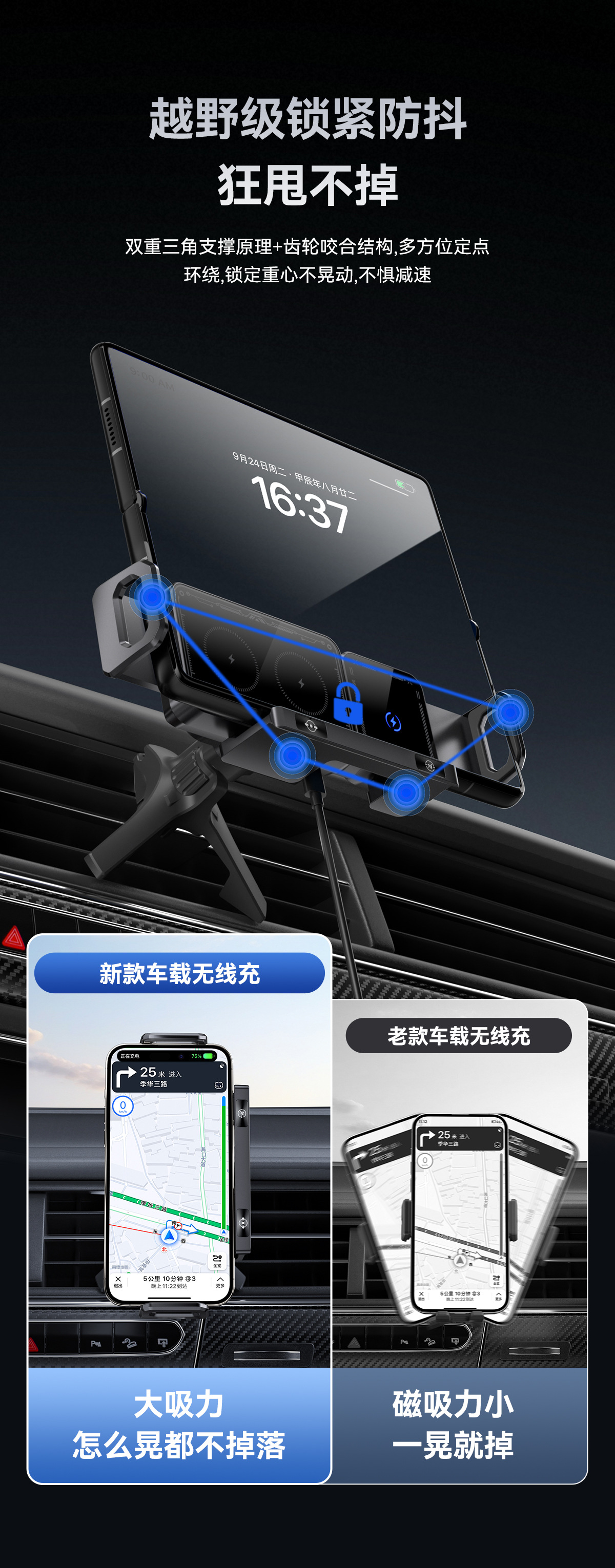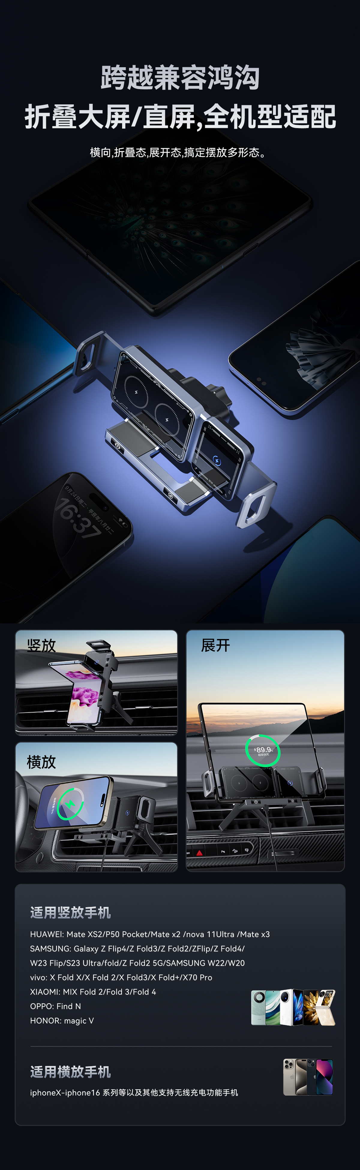 2025摺疊螢幕手機支架無線充汽車導航出風口中控台手機支架旋轉橫屏