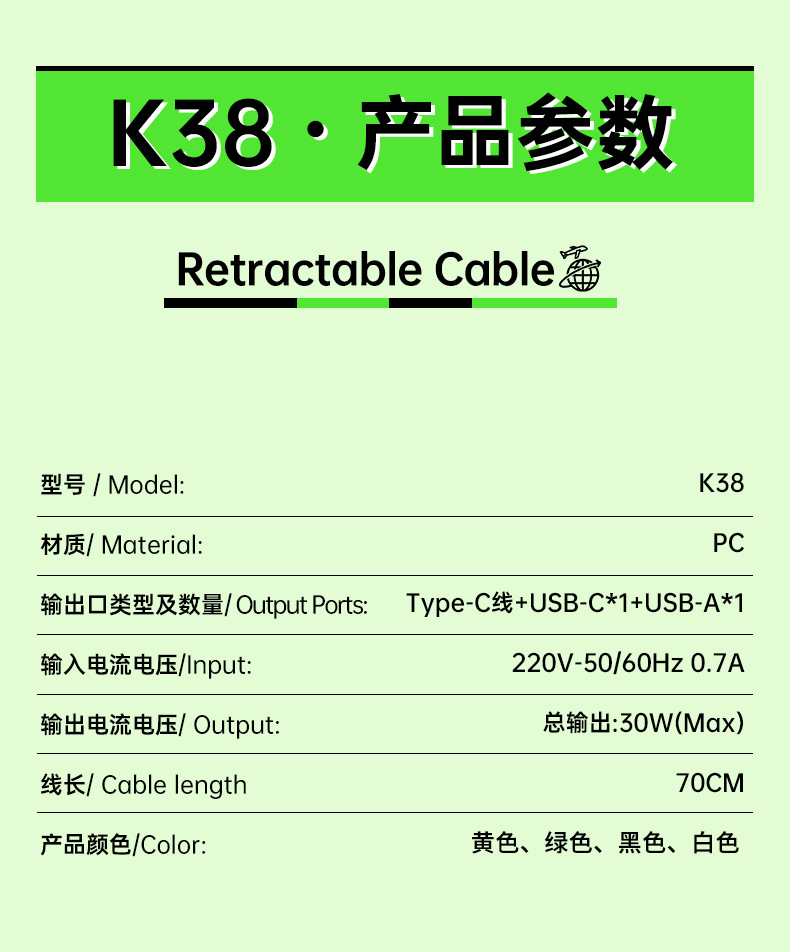 | 適用型號 | 綠色-雙口自帶Lightning伸縮線 |