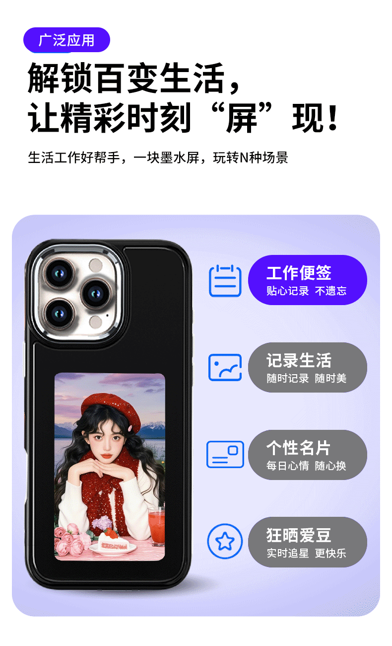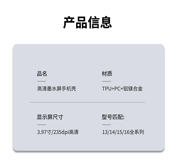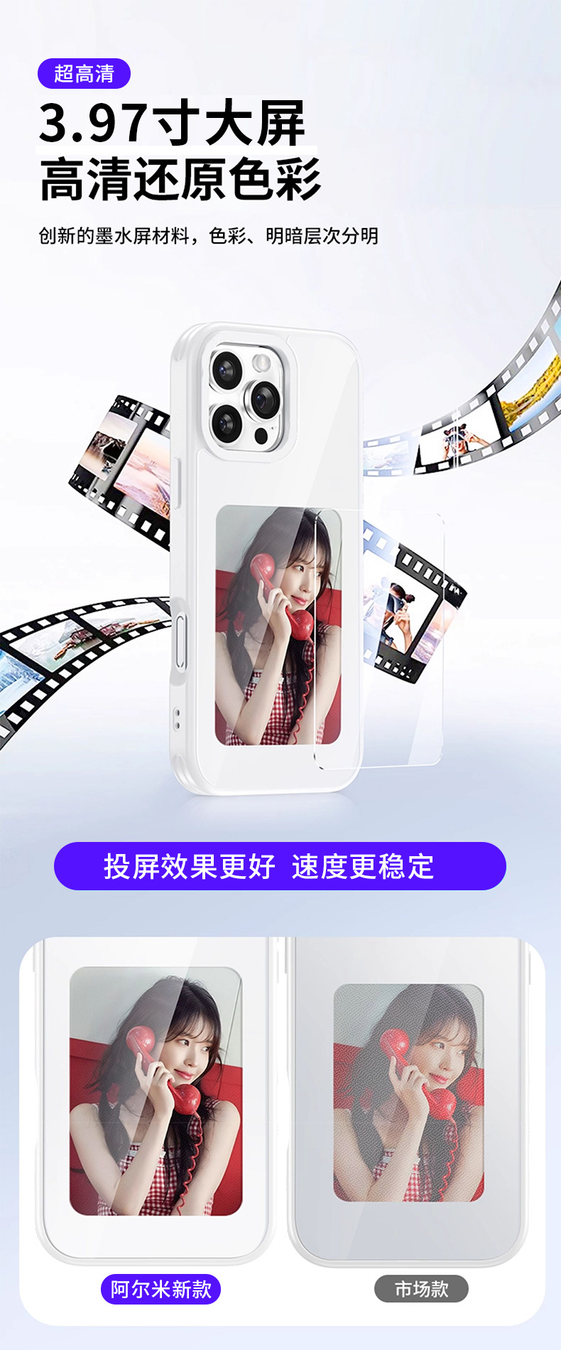 蘋果手機殼四色墨水屏手機殼16promax適用蘋果13投影手機殼15