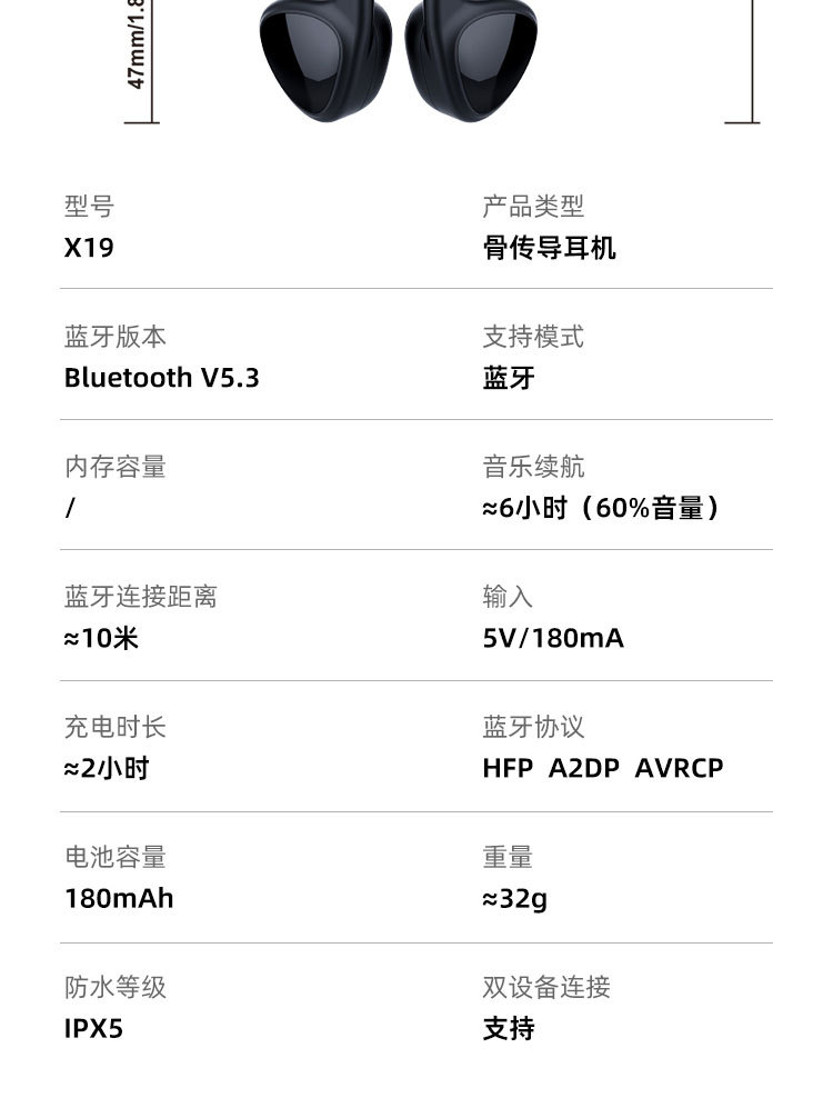 x19骨傳導藍牙耳機久戴不痛舒適跑步運動長續航音樂骨導耳機
