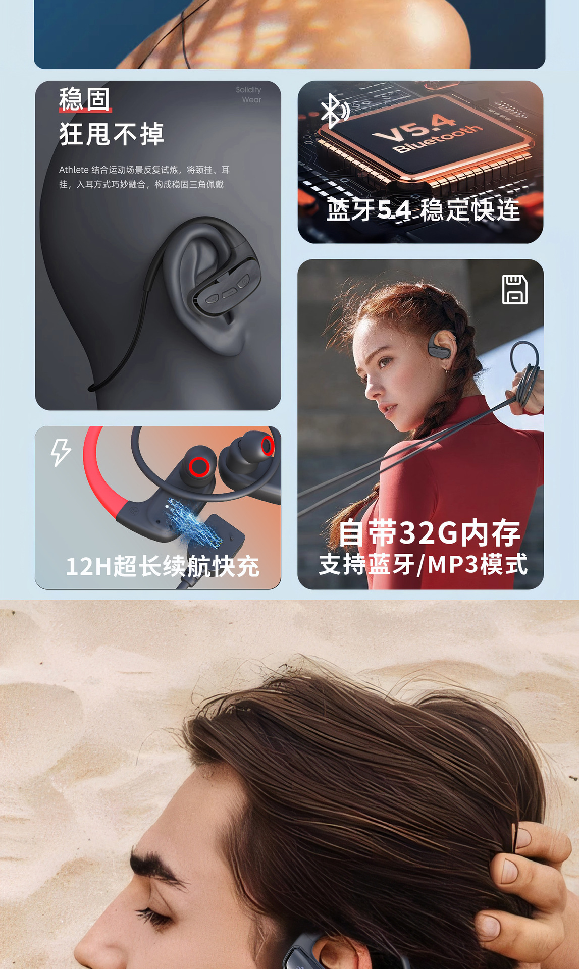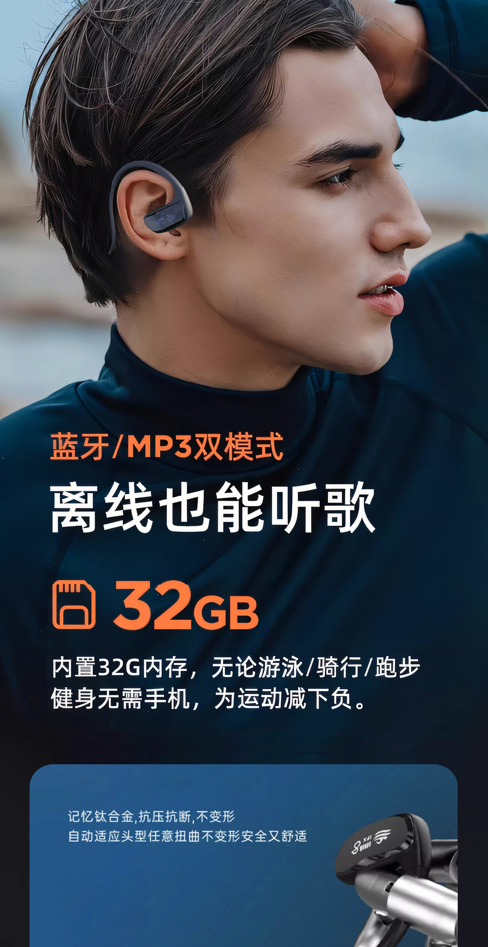 藍牙耳機無線入耳式黑科技自帶32G內存超長續航耳掛式骨傳導耳機